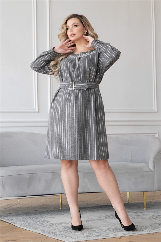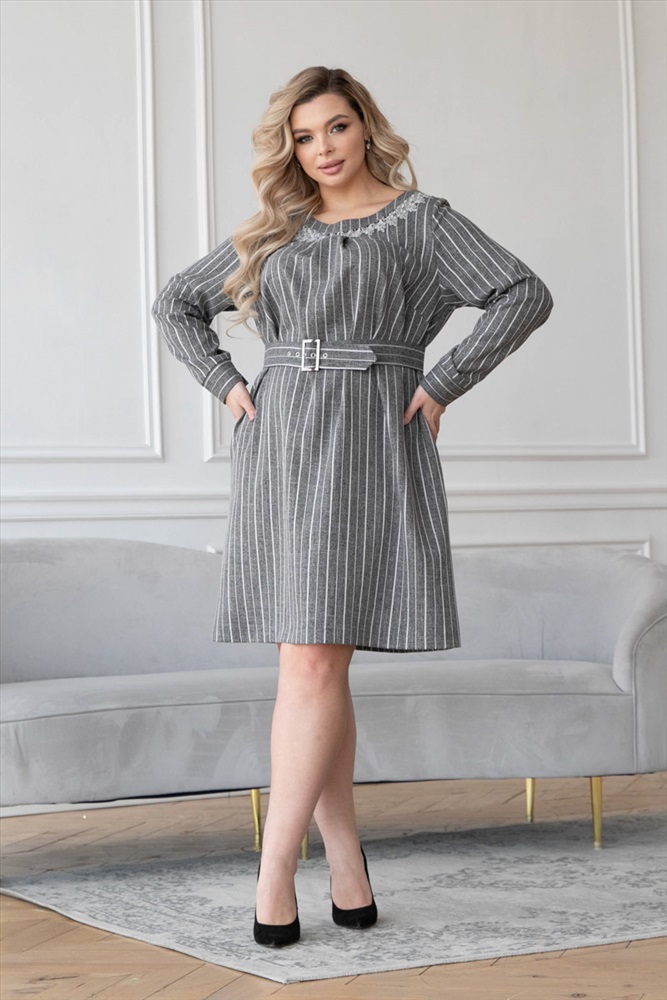 ШтрихКод: 4630328718736 По размеру: 52, 54, 56 Состав: Вискоза 65% Полиэстер 30% Эластан 5% Скидка на сайте: 20% Срок готовности: 2021-01-20T00-00-00 "Обаятельное платье прямого силуэта из текстильного полотна серого цвета. Круглый вырез изделия обработан внешней обтачкой и дополнен кружевной кокеткой и сборкой. Платье с втачными рукавами, по бокам изделия — карманы. В комплект входит пояс с металлической пряжкой. Длина изделия по спинке от плечевого шва до низа изделия — 98 см. Рост фотомодели — 170 см." Комментарии к товару