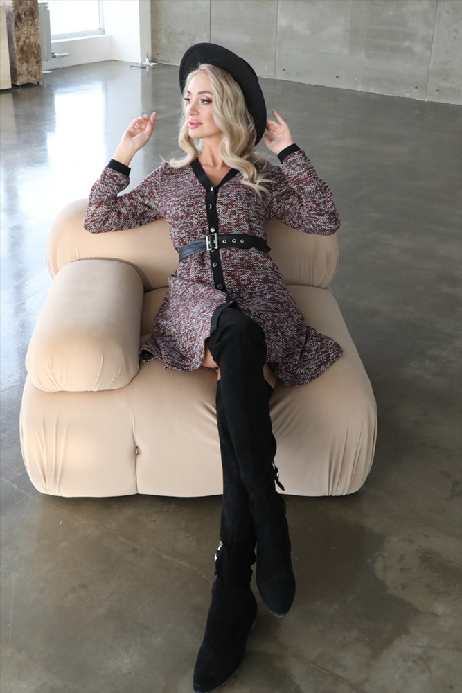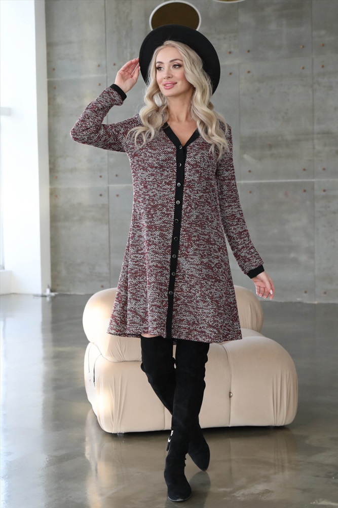 ШтрихКод: 4620306115145 По размеру: 48, 50, 52, 54 Состав: Вискоза 95% Эластан 5% Скидка на сайте: 20% Срок готовности: 2022-02-04T00-00-00 Эффектное платье полуприлегающего силуэта из трикотажного полотна черно-красного цвета. V-образный вырез обработан внешней обтачкой. По переду изделия выполнена планка с застежкой на пуговицы. Втачные рукава обработаны манжетами. Длина изделия по спинке от плечевого шва до низа изделия —84 см. Ремень входит в комплект. Аксессуары в комплект не входят. Рост фотомодели — 170 см. Комментарии к товару