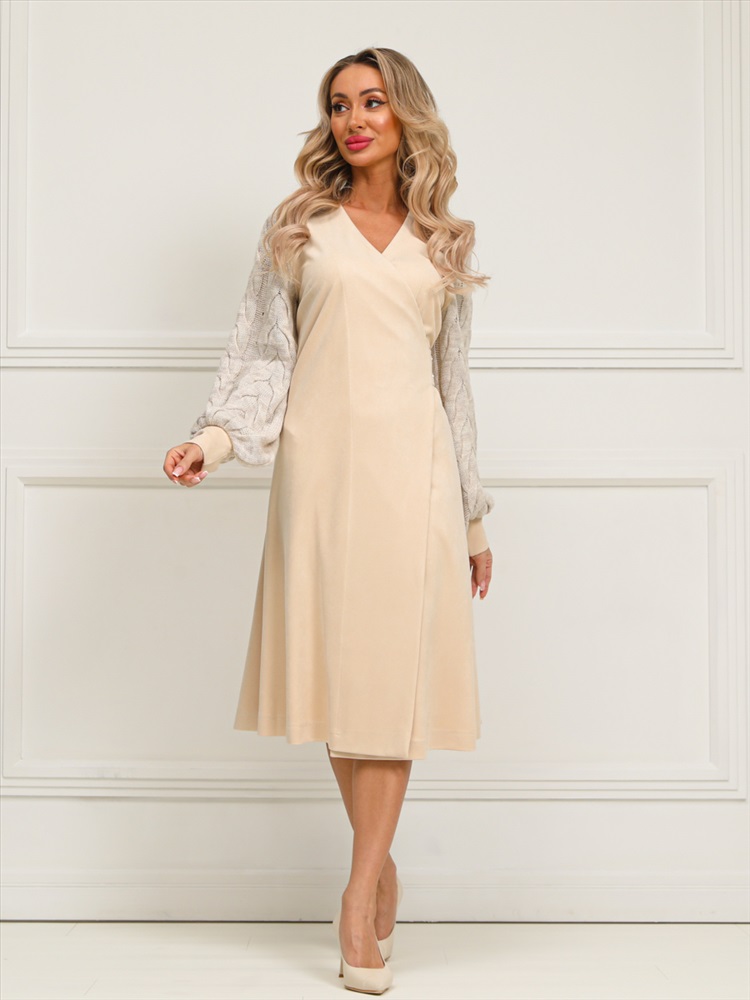 ШтрихКод: 4650333102580 По размеру: 48, 50 Состав: Вискоза 65% Полиэстер 30% Эластан 5% Срок готовности: 2025-01-27T00-00-00 Обаятельное платье полуприлегающего силуэта из трикотажного вельвета бежевого цвета. Перед изделия выполнен в форме запаха. Сбоку изделия застежка на кнопки. Втачные рукава выполнены в технике ручного вязания и обработаны манжетами. Длина изделия по спинке от плечевого шва до низа изделия —108 см. Рост фотомодели — 170 см. Комментарии к товару
