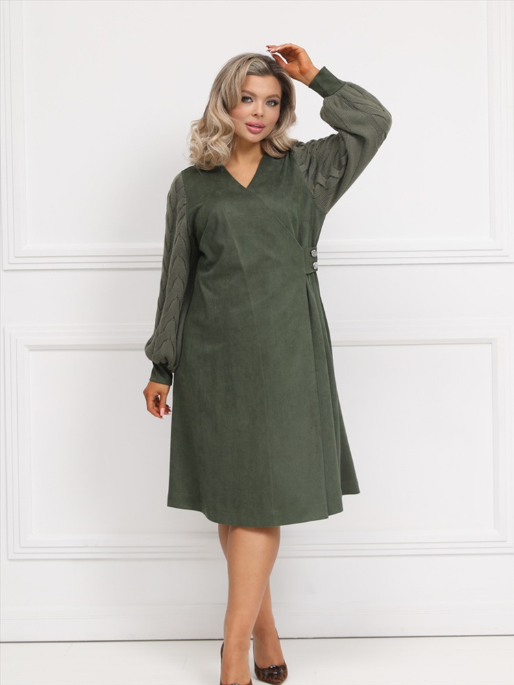 По размеру: 54 Состав: Вискоза 65% Полиэстер 30% Эластан 5% ШтрихКод: 4620306122419 Срок готовности: 2025-01-27T00-00-00 Обаятельное платье полуприлегающего силуэта из трикотажного вельвета цвета хаки. Перед изделия выполнен в форме запаха. Сбоку изделия застежка на кнопки. Втачные рукава выполнены в технике ручного вязания и обработаны манжетами. Длина изделия по спинке от плечевого шва до низа изделия — 111 см. Рост фотомодели — 170 см. Комментарии к товару