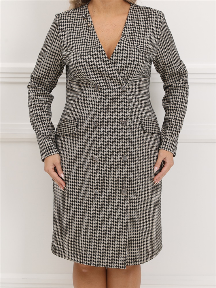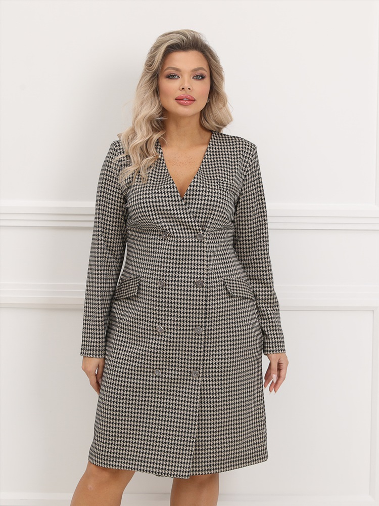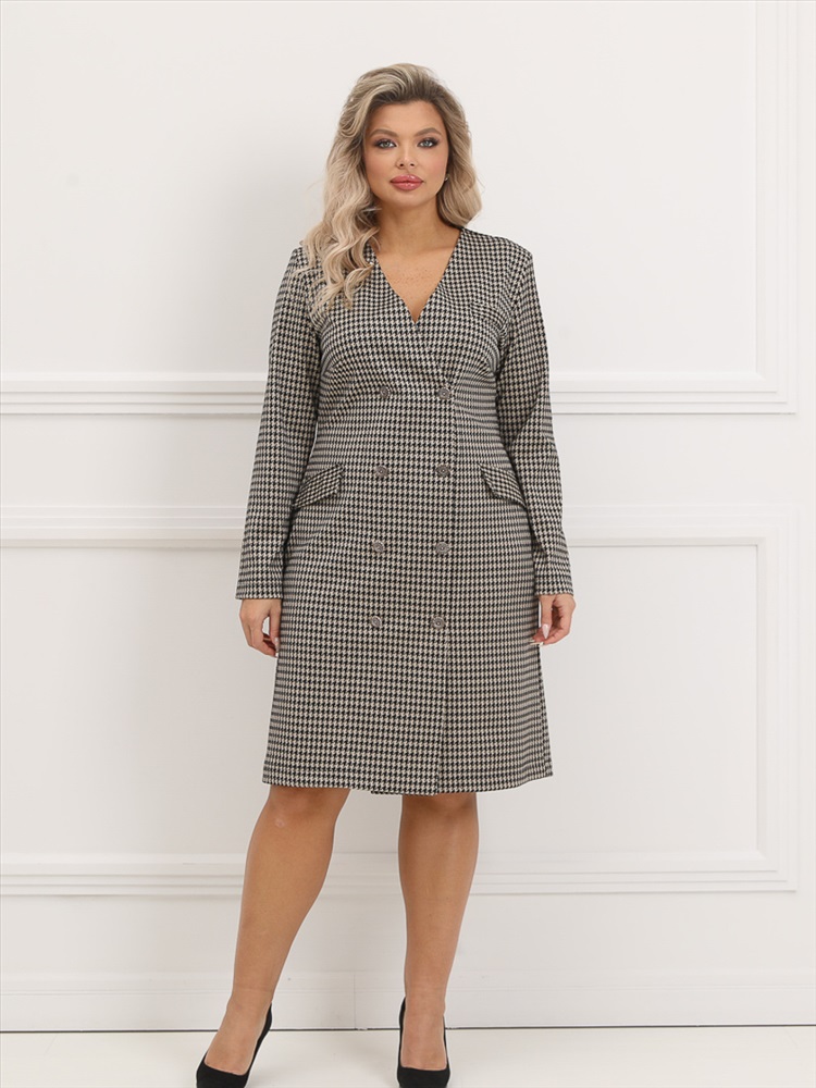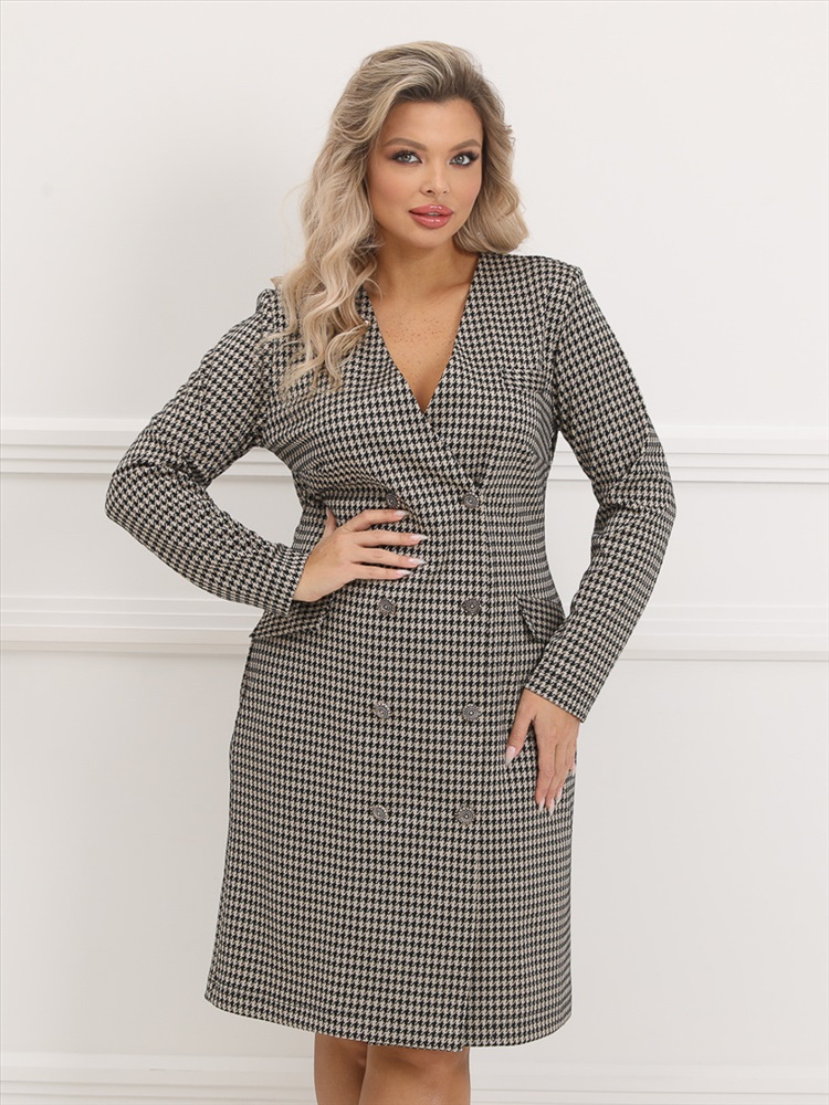 ШтрихКод: 4620306107454 По размеру: 52, 54, 56, 58 Состав: Вискоза 30% Полиэстер 65% Эластан 5% Скидка на сайте: Без скидки Срок готовности: 2024-10-21T00-00-00 Деловое платье прилегающего силуэта из трикотажного полотна бежевого цвета. Платье с двубортной застежкой на пуговицы по планке переда. По переду изделия имитация накладных карманов. В комплект входит декоративный элемент с камнем. Длина изделия по спинке от плечевого шва до низа изделия - 103 см. Рост фотомодели — 170 см. Комментарии к товару