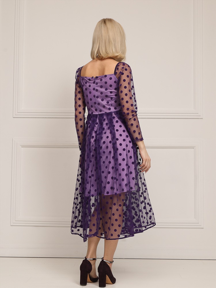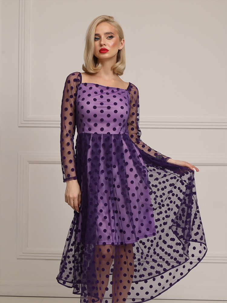 ШтрихКод: 4650333107325 По размеру: 44, 46, 52, 54 Состав: Полиэстер 95% Эластан 5% Скидка на сайте: Без скидки Срок готовности: 2023-11-07T00-00-00 Восхитительное платье полуприлегающего силуэта из текстильной ткани фиолетового цвета. Квадратный вырез изделия обработан внутренней обтачкой. Платье отрезное по линии талии, линия талии эффектно подчёркнута сборкой. Изделие на трикотажном подкладе. Втачные рукава и низ изделия обработаны бейкой. Длина изделия по спинке от плечевого шва до низа изделия — 110 см. Рост фотомодели — 170 см Комментарии к товару