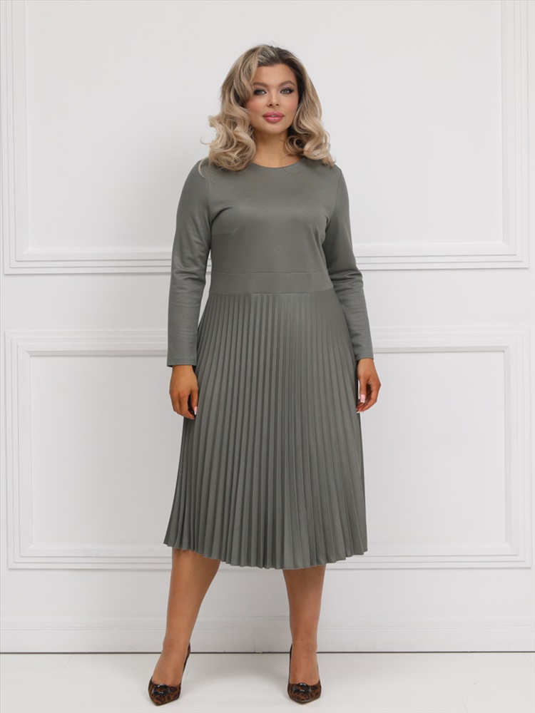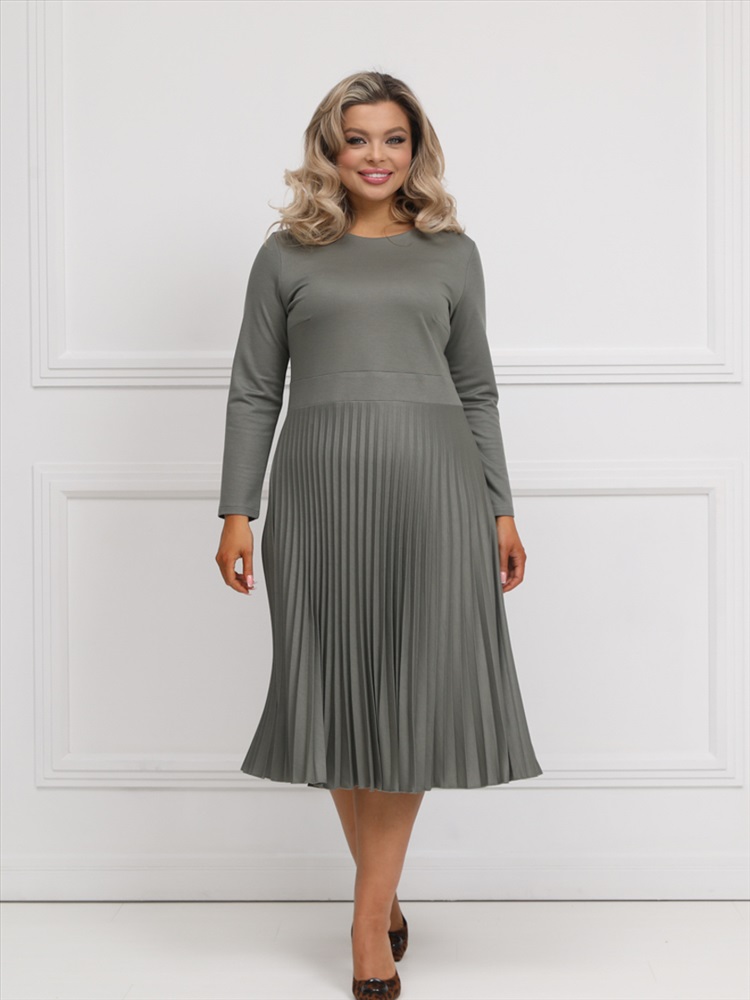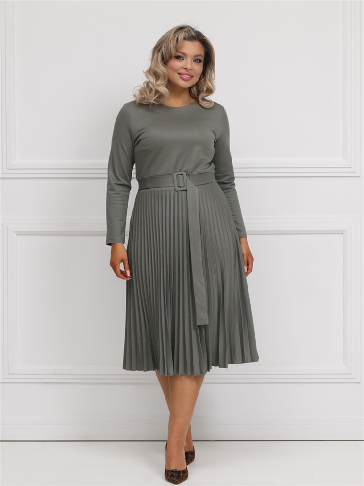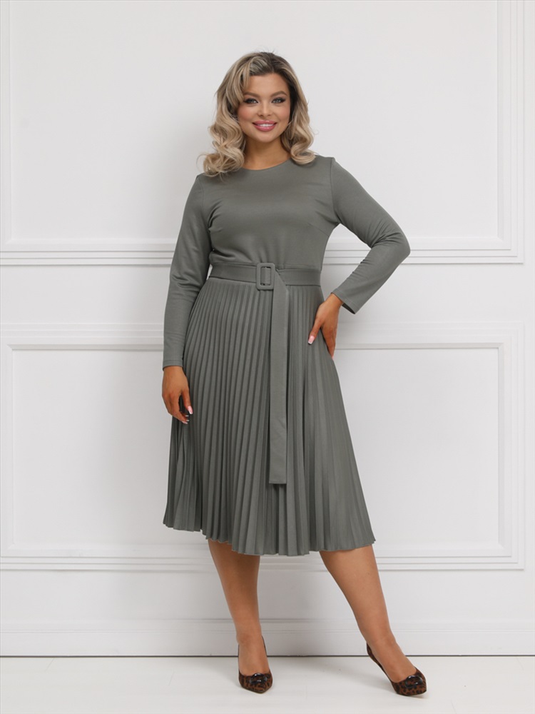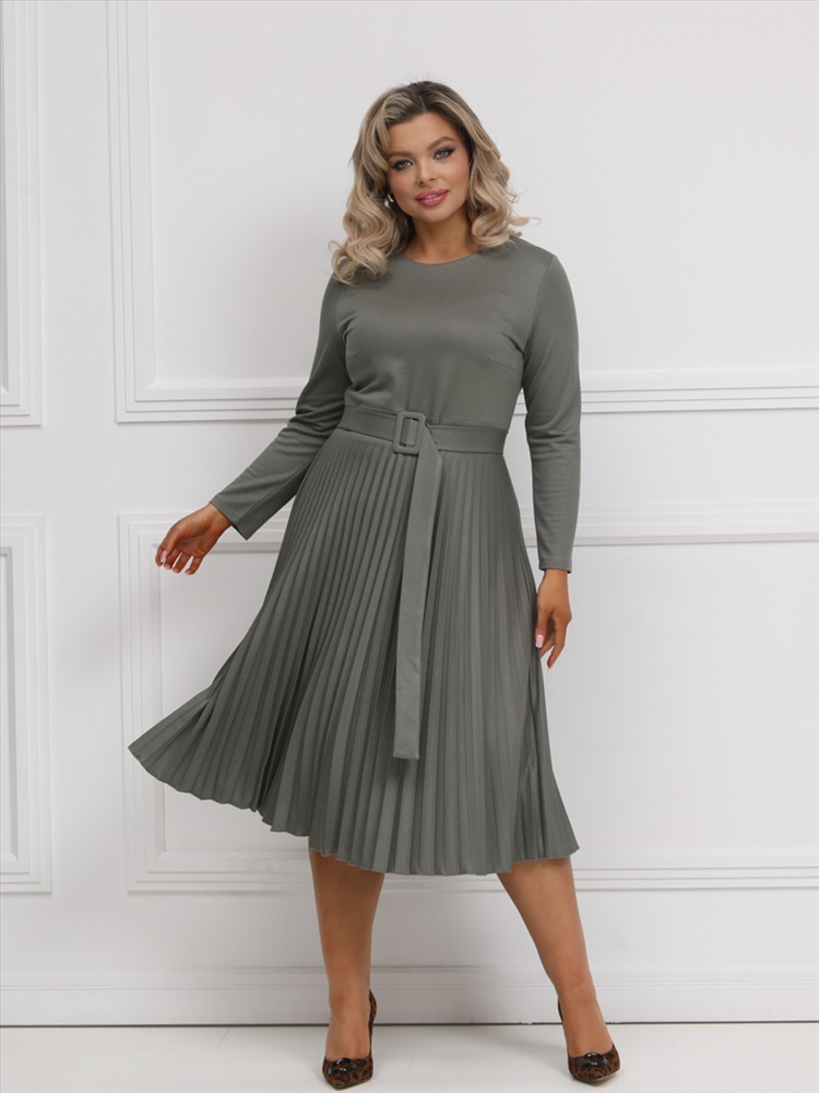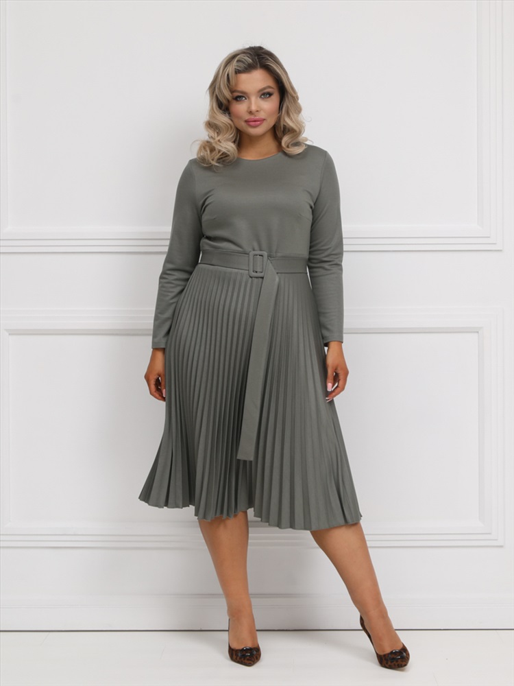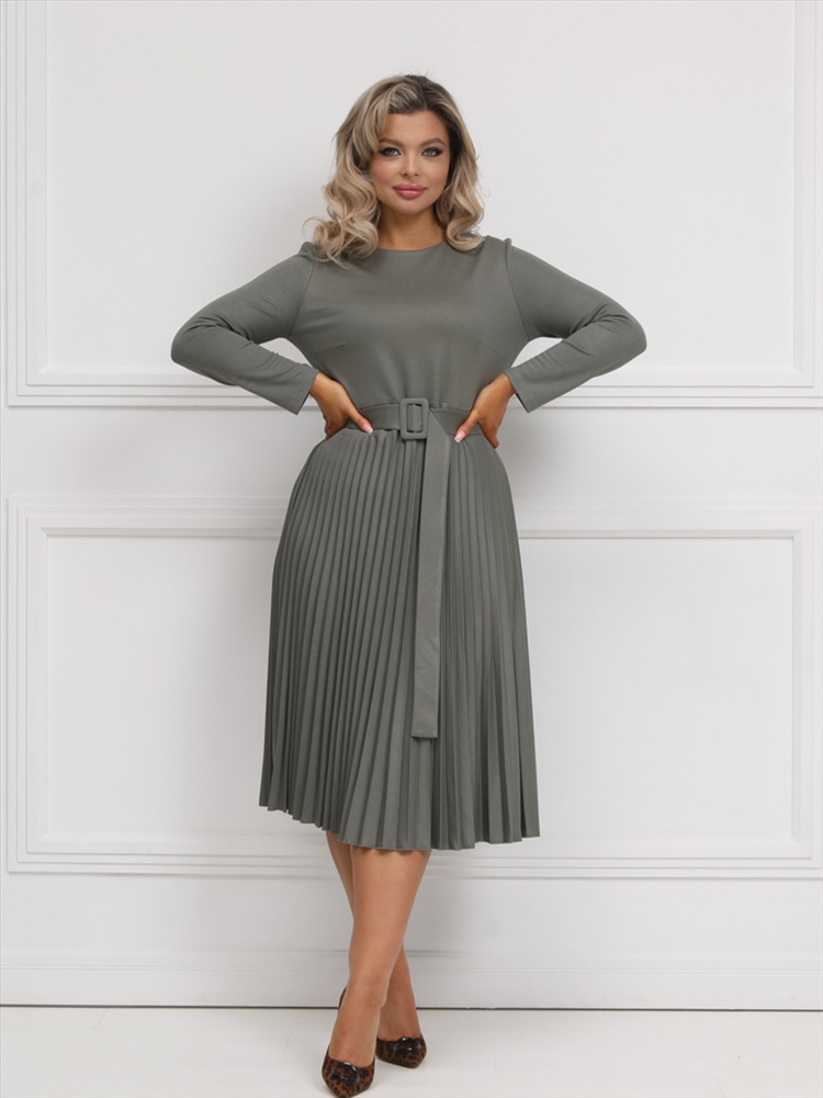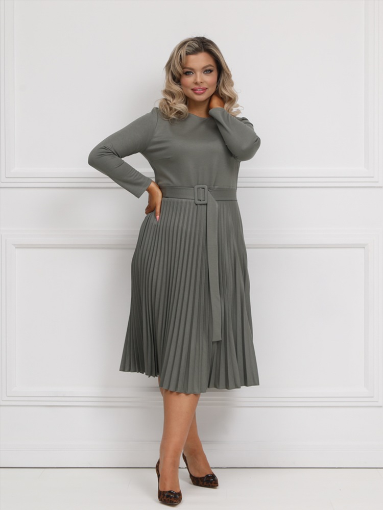 ШтрихКод: 4620306124499 По размеру: 52, 54, 56 Состав: Вискоза 95% Эластан 5% Скидка на сайте: Без скидки Срок готовности: 2025-02-04T00-00-00 Эффектное платье полуприлегающего силуэта из трикотажного полотна цвета хаки. Круглый вырез изделия обработан внутренней обтачкой. Платье с втачными рукавами и отрезной юбкой. Юбка выполнена из гофрированного полотна. В комплект входит ремень. Длина изделия по спинке от плечевого шва до низа изделия — 114 см. Рост фотомодели 170 см. Комментарии к товару