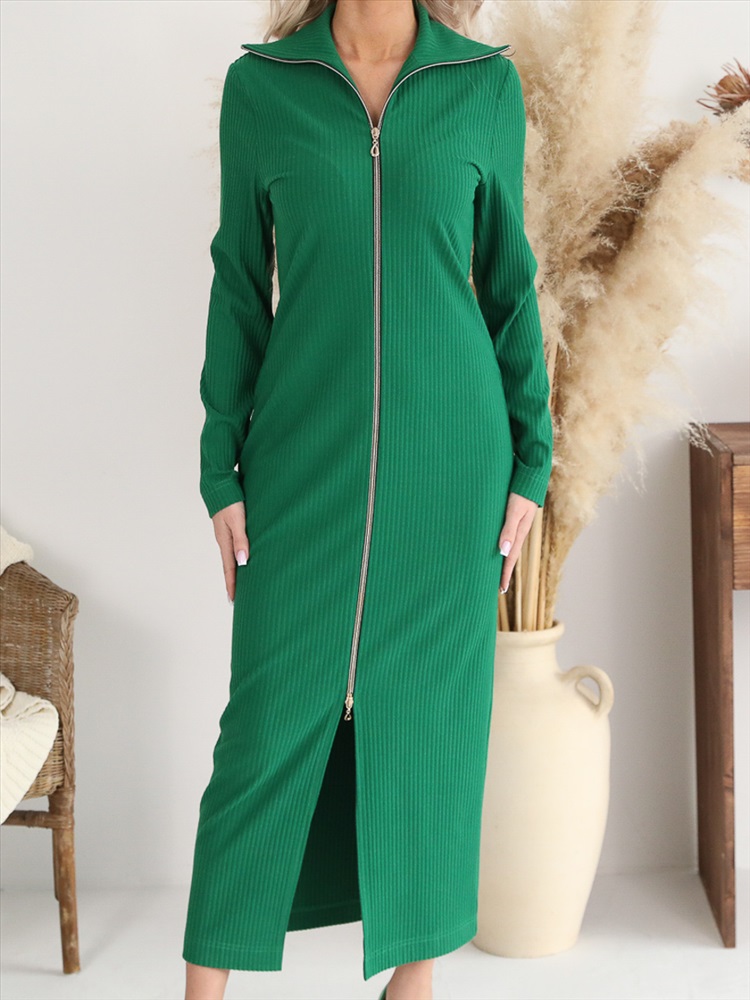 ШтрихКод: 4650333122229 По размеру: 44, 46, 48, 50, 52, 54, 56 Состав: Вискоза 95% Эластан 5% Срок готовности: 2024-10-28T00-00-00 Стильное платье полуприлегающего силуэта из трикотажного полотна зеленого цвета. Платье с отложным воротником. Застежка по переду изделия на металлическую молнию. Платье со спущенной проймой и втачными рукавами. Длина изделия по спинке от плечевого шва до низа изделия — 129 см. Рост фотомодели — 170 см. Комментарии к товару
