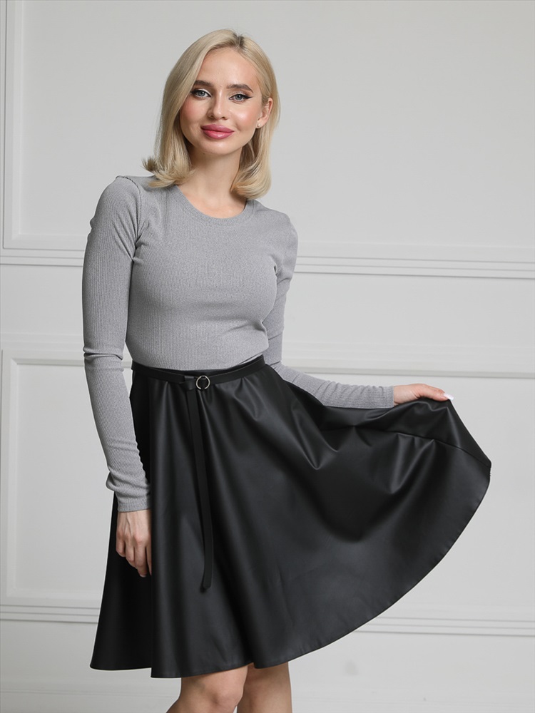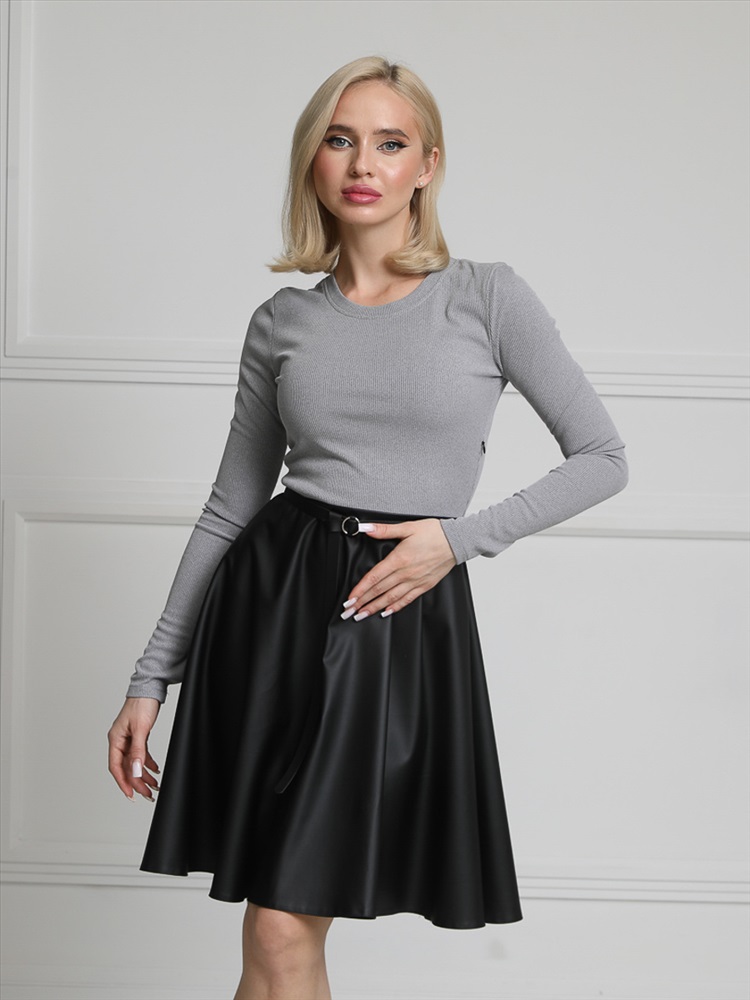 ШтрихКод: 4620306110607 По размеру: 42, 44, 46, 48 Состав: Вискоза 95% Эластан 5% Срок готовности: 2024-11-08T00-00-00 Обаятельное платье прилегающего силуэта из трикотажного полотна серого цвета. Верхняя часть изделия выполнена из трикотажного полотна, а юбка из эко-кожи. Круглый вырез изделия обработан внешней обтачкой. Платье с втачными рукавами. В комплект входи ремень. Длина изделия по спинке от плечевого шва до низа изделия — см. Рост фотомодели - 170 см. Комментарии к товару