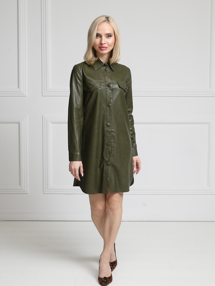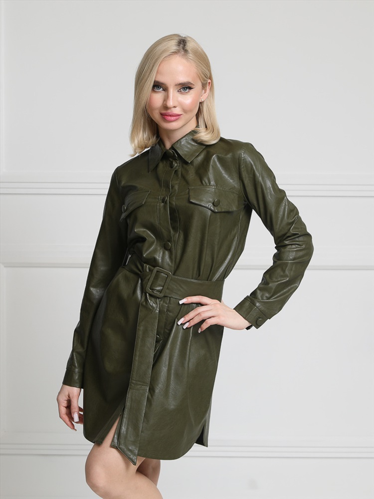 ШтрихКод: 4620306110683 По размеру: 42, 44, 46, 48 Состав: Полиэстер 95% Эластан 5% Срок готовности: 2024-11-08T00-00-00 Стильное платье прямого силуэта из эко-кожи на трикотажной основе цвета хаки. Круглый вырез изделия обработан отложным воротником. Перед изделия дополнен клапанами с пуговицами. Втачные рукава обработаны манжетами. По переду изделия планка с застежкой на пуговицы. По бокам изделия - разрезы. В комплект входит пояс. Длина изделия по спинке от плечевого шва до низа изделия — см. Рост фотомодели - 170 см. Комментарии к товару