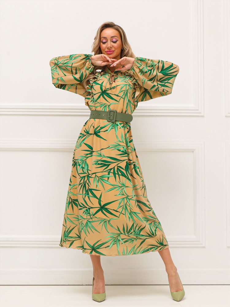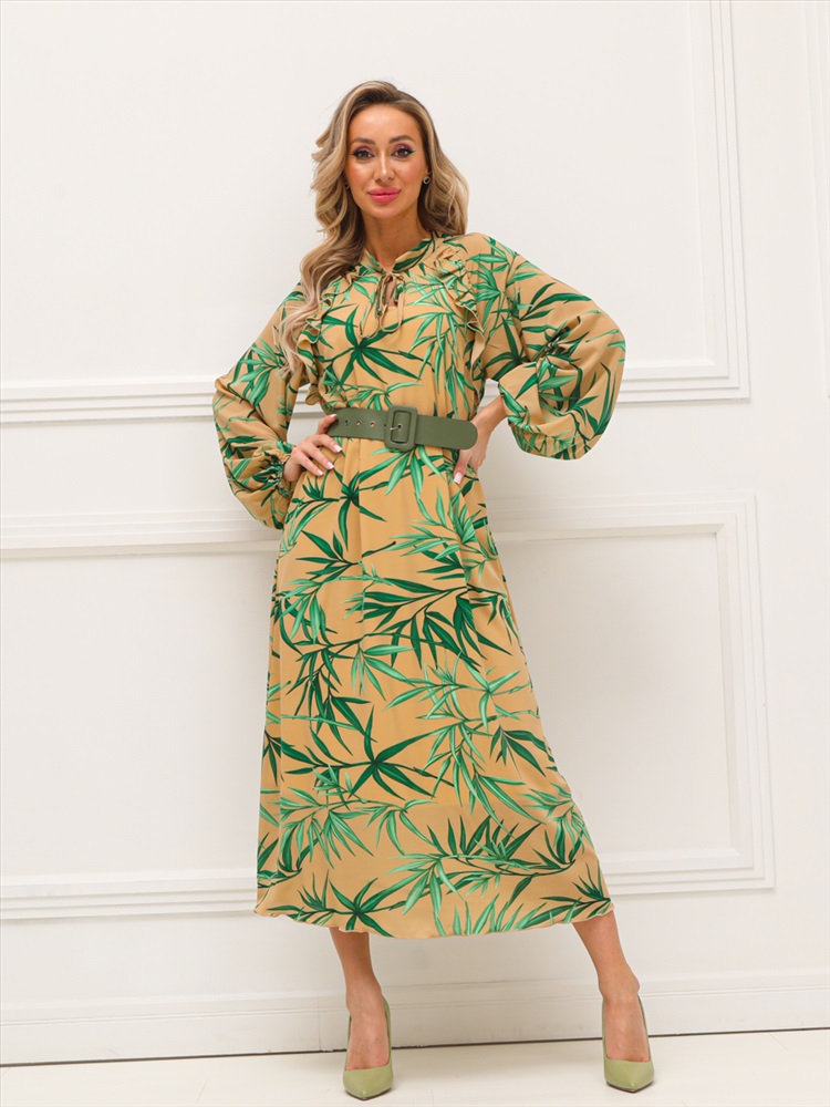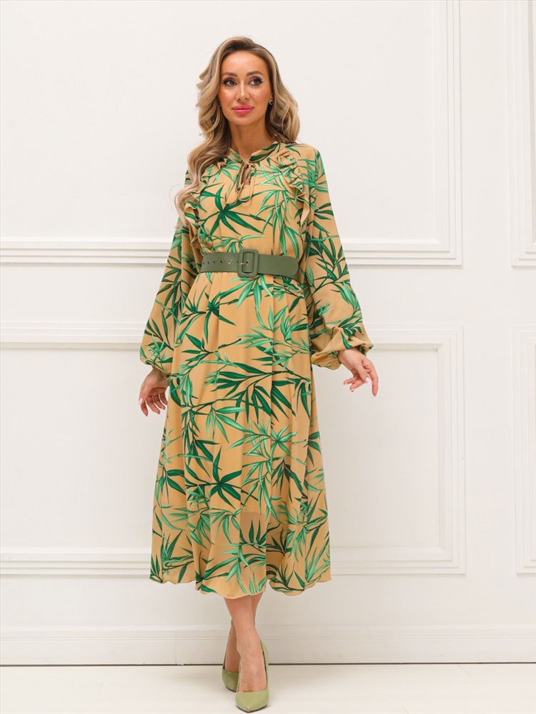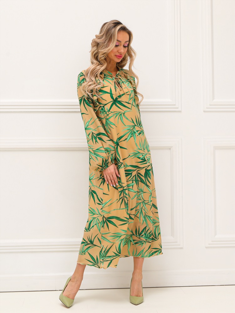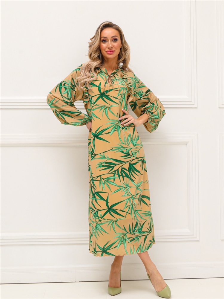 ШтрихКод: 4620306131657 По размеру: 46, 48, 50, 52, 54, 56 Состав: Полиэстер 95% Эластан 5% Срок готовности: 2025-03-03T00-00-00 Очаровательное платье свободного силуэта из текстильной шелковой ткани высокого качества бежево-зеленого цвета. Круглый вырез изделия обработан оборкой и дополнен завязками. Рукава - реглан дополнены оборками и обработаны узкой резинкой. По низу изделия - закрутка. Платье на трикотажном подкладе. Длина изделия по спинке от плечевого шва до низа изделия - см. Рост фотомодели — 170 см Комментарии к товару