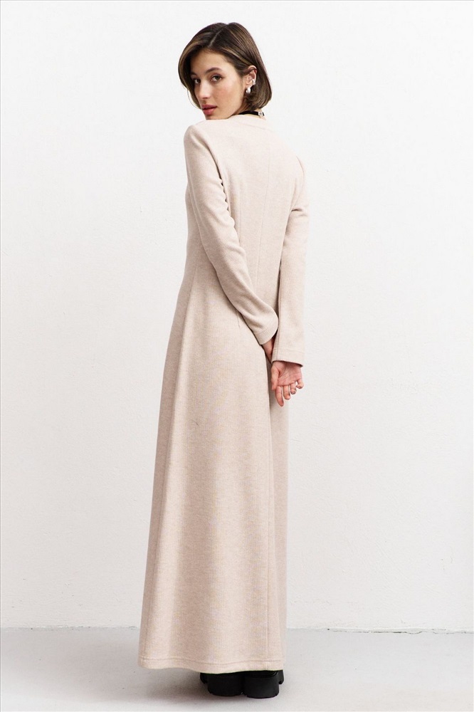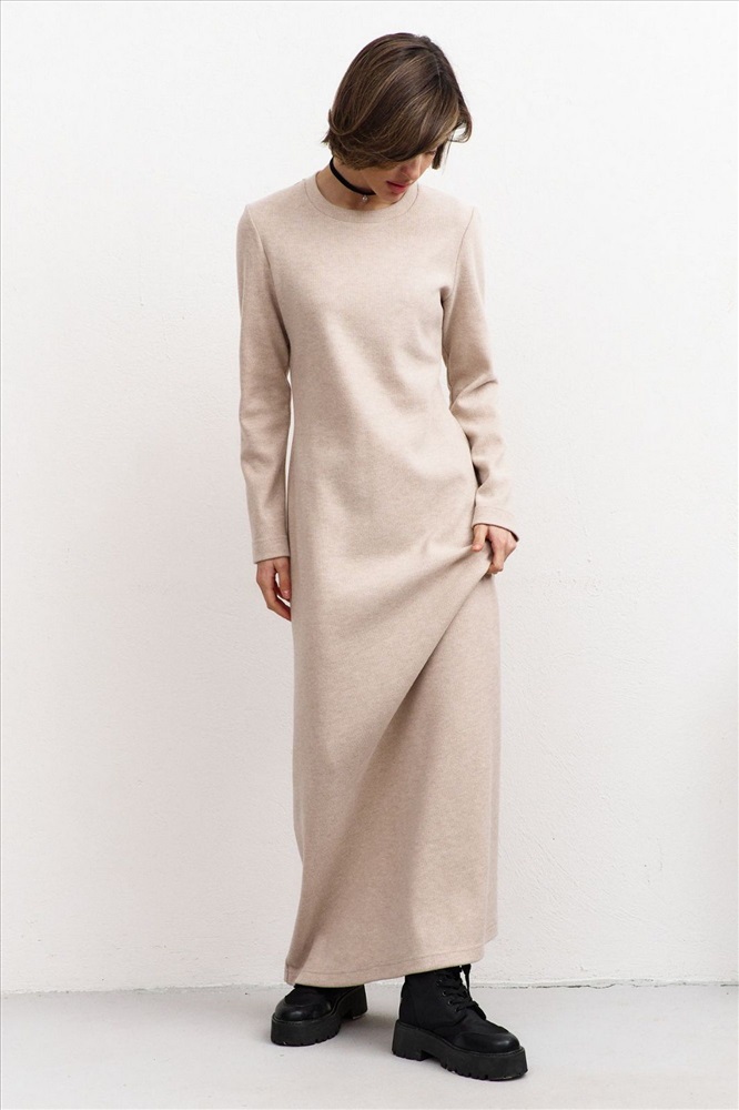 Платье А-силуэта: -длинна макси -округлая горловина .