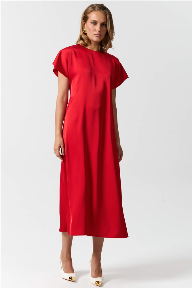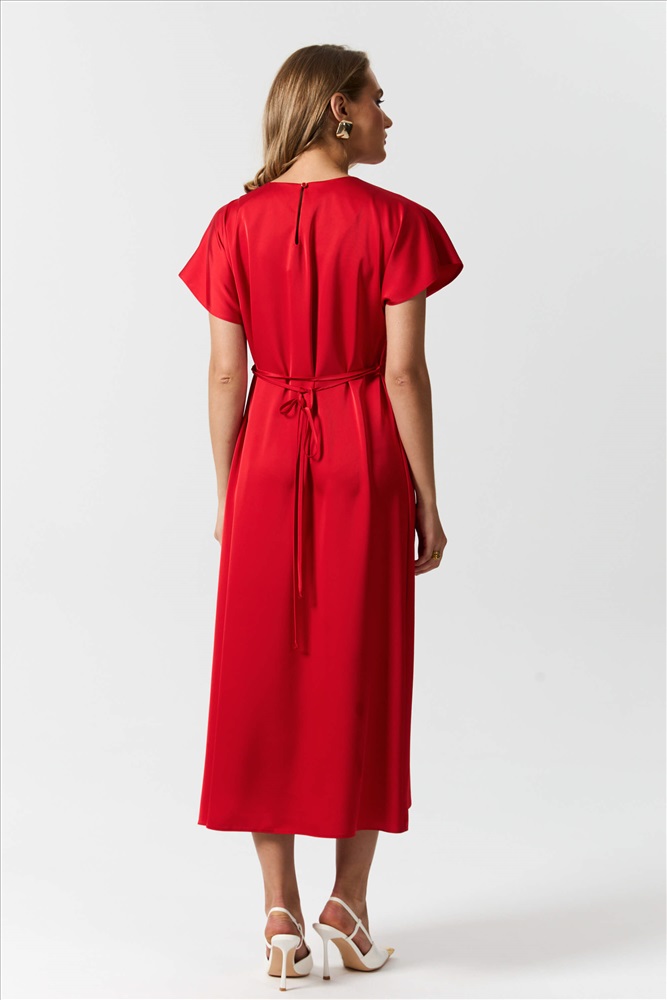 Состав: 100% полиэстер Длина: 126 см Цветовая гамма: Красный Силуэт: Полуприлегающий Принт: Нет Коллекция: Новый год 2026 Платье из атласа высокого качества длины миди. Модель полуприлегающего силуэта. Рукав спущенный, широкий. По спинке застежка на петлю и пуговицу. В комплекте тонкий пояс, со шлевками. Комментарии к товару