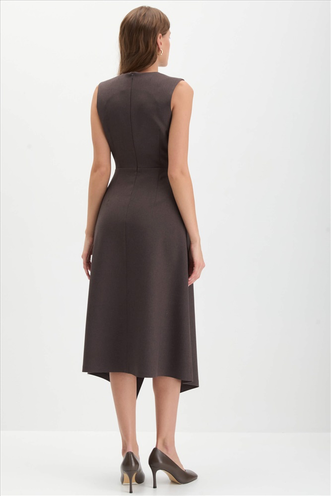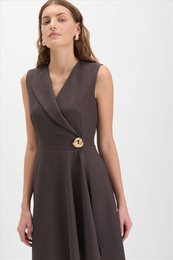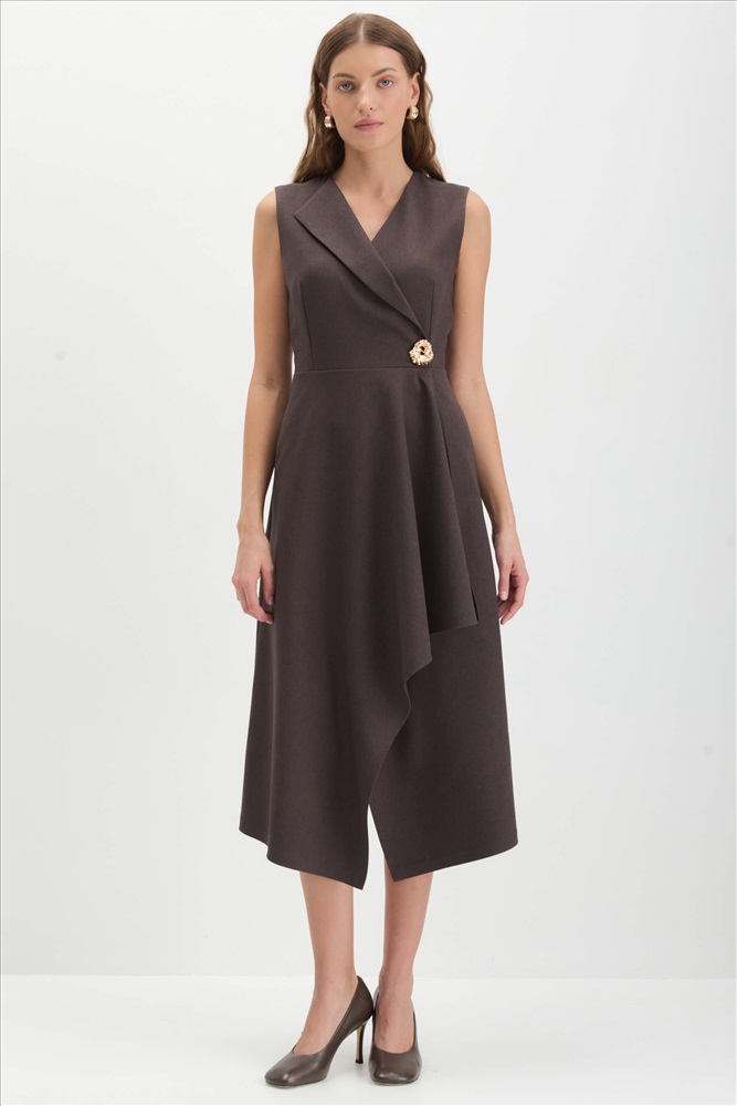 Состав: 55% вискоза 40% полиэстер 5% эластан Длина: 120 см. Цветовая гамма: Графитово-шоколадный Силуэт: Полуприлегающий Принт: Да Коллекция: Весна #1 Платье длины миди с ассиметричным низом и акцентной брошью. Модель полуприлегающего силуэта, отрезная по линии талии. По переду имитация запаха с металлической пряжкой и декоративный лацкан. По спинке застежка на потайную молнию и рельефы. Комментарии к товару