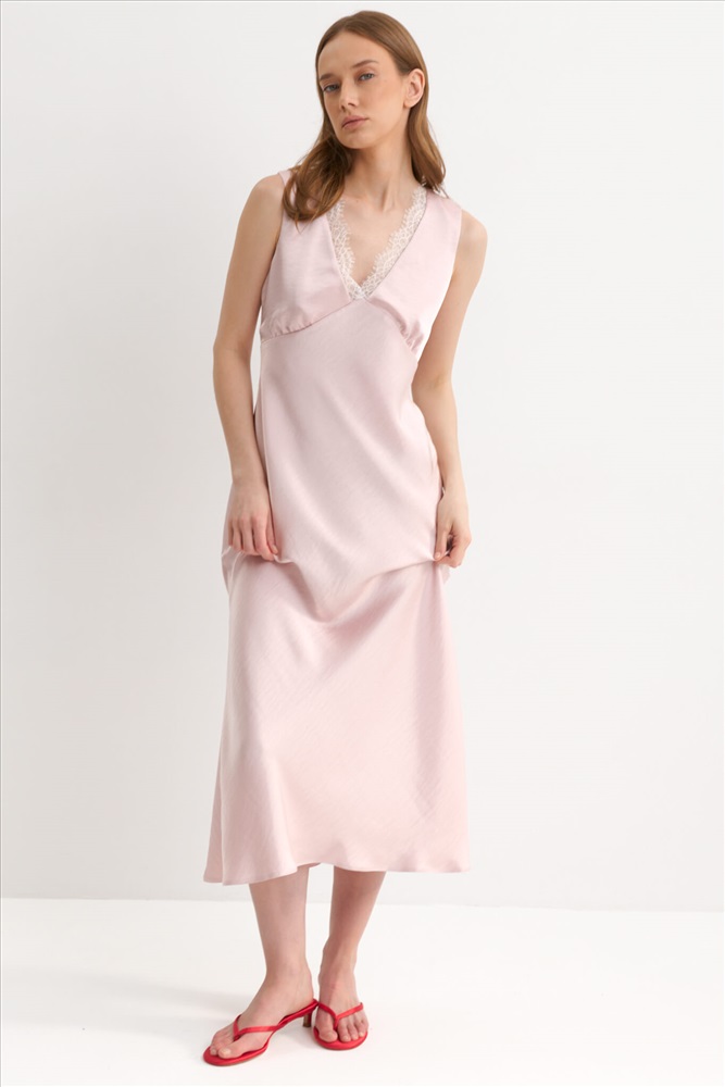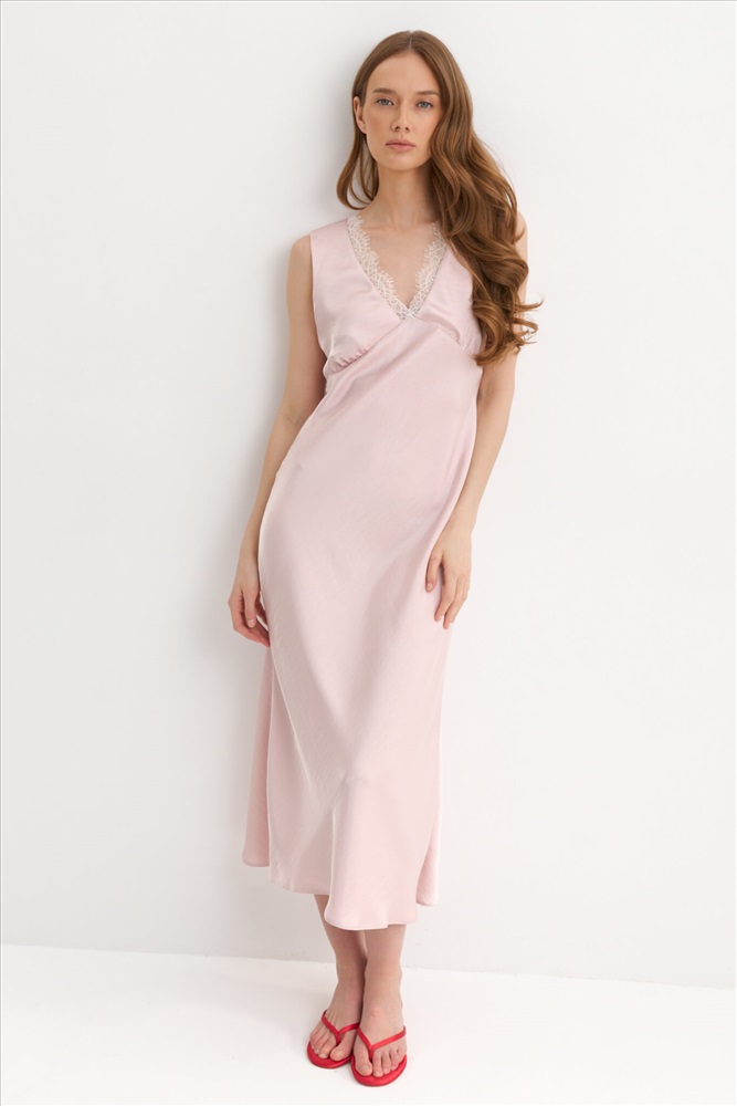 Состав: 100% ПЭ Длина: 130 см. Цветовая гамма: Розовый Силуэт: Полуприлегающий Принт: Нет Коллекция: Лето #4 Платье из мягкого крэш-атласа в бельевом стиле. Модель полуприлегающего силуэта. V-образный вырез с отделкой французским кружевом. По переду и спинке фигурный подрез. Верх на подкладке из основного материала (двойной). Комментарии к товару