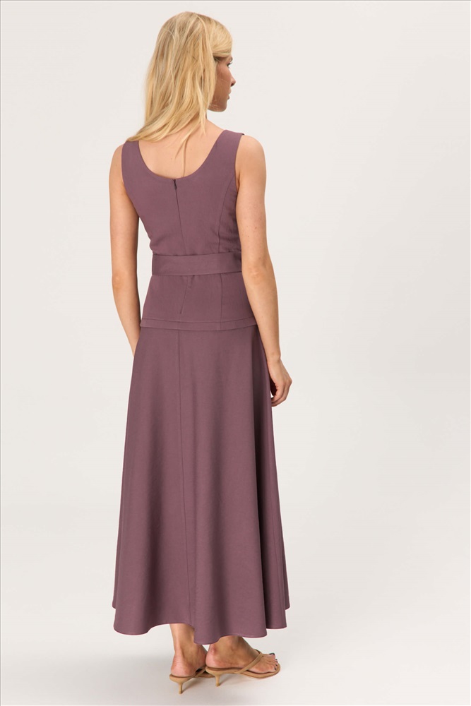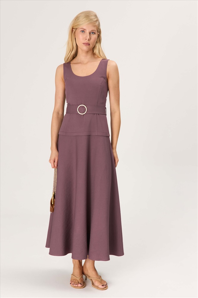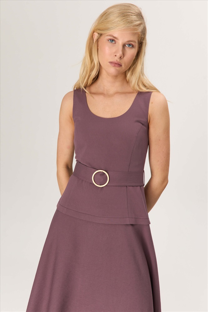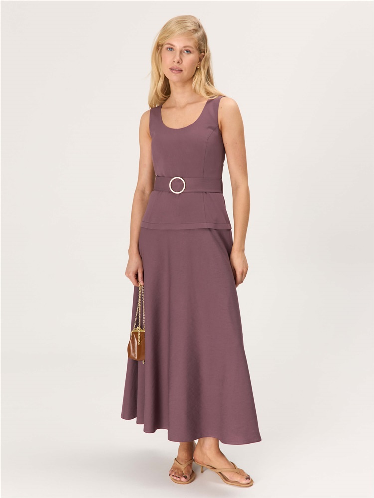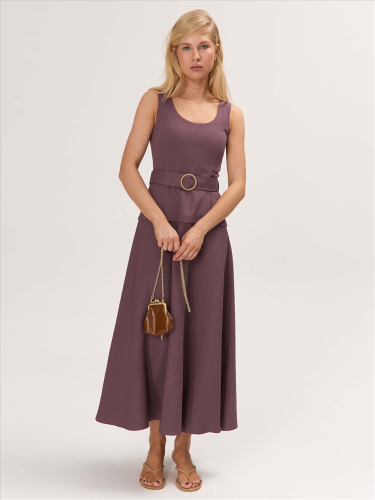 Состав: 85% Вискоза, 15% Нейлон Длина: 128 см. Цветовая гамма: Инжир Силуэт: Полуприлегающий Принт: Нет Коллекция: Лето #5 Платье с акцентной пряжкой из вискозы. Модель полуприлегающего силуэта с отрезной линией чуть выше бедер, оформленной декоративной складкой. Юбка широкая, свободная. Линия талии подчеркивается поясом с металлической пряжкой и фиксируется на шлевки. Комментарии к товару