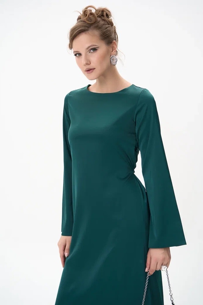Лаконичный силуэт, мягкое прилегание по фигуре. Сзади предусмотрены завязки, позволяющие регулировать талию и посадку. Лёгкая текучая фактура подчёркивает движение и даёт комфорт в носке. Подходит для базовых и вечерних образов.