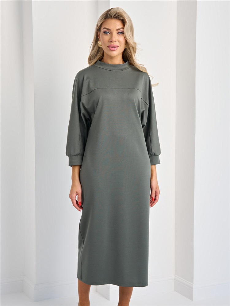 Платье трикотажное цвета хаки от производителя Jetty. Модель с воротником стойкой прямого кроя. Длинные рукава летучая мышь. Декоративный рез кокетки переходящий на рукав. Ремень не идет в комплекте. Прекрасно дополнит Ваш гардероб для любого мероприятия., Оттенок цвета может незначительно отличаться от фото., Размер модели: 42., Рост модели: 170 см., Состав:, Полиэстер 65%, Вискоза 30%, Эластан 5%, Тип ткани:, Трикотаж