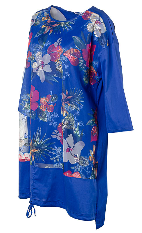 Сезон: Весна-Лето Производитель: Китай Вид застёжки: Без застёжки Цвет: Синий Размер: L-XL Красивое и лёгкое платье свободного силуэта, комбинированное из разных видов ткани: однотона и сетки с вышивкой. Рукав длиной 3/4 спущенный. Соответствие размеров: L-XL/ 52-56 2XL-3XL/ 58-62 Комментарии к товару
