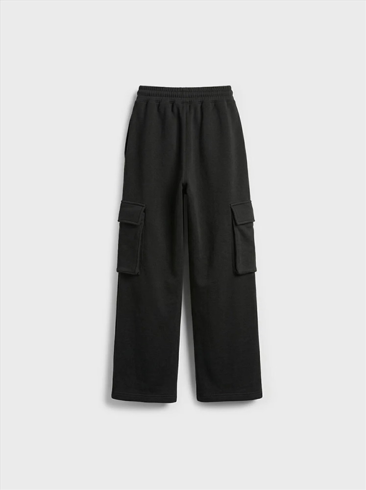 Трикотажные брюки прямого кроя для мальчика подростка. Изделие выполнено из мягкого хлопкового трикотажа. Пояс на резинке с удобной регулировкой шнурком. По бокам есть карманы, а на бедрах — карманы с клапанами на липучке. На одном из них — черно-белый шеврон с надписью. Благодаря комфортной посадке и натуральному составу ткани, модель удобна для повседневной носки.