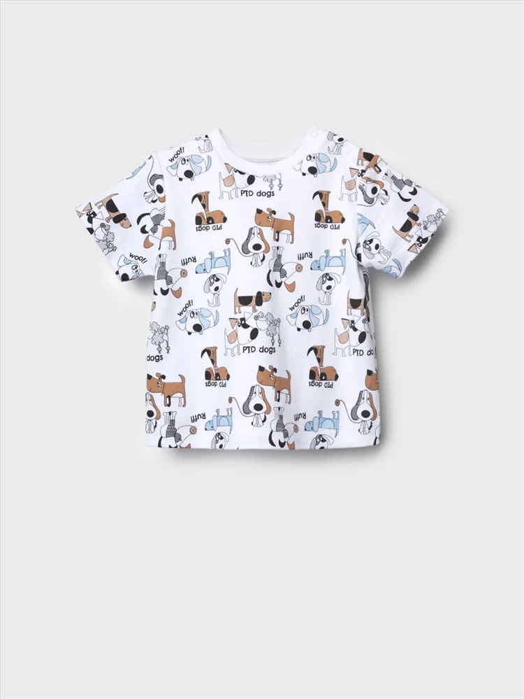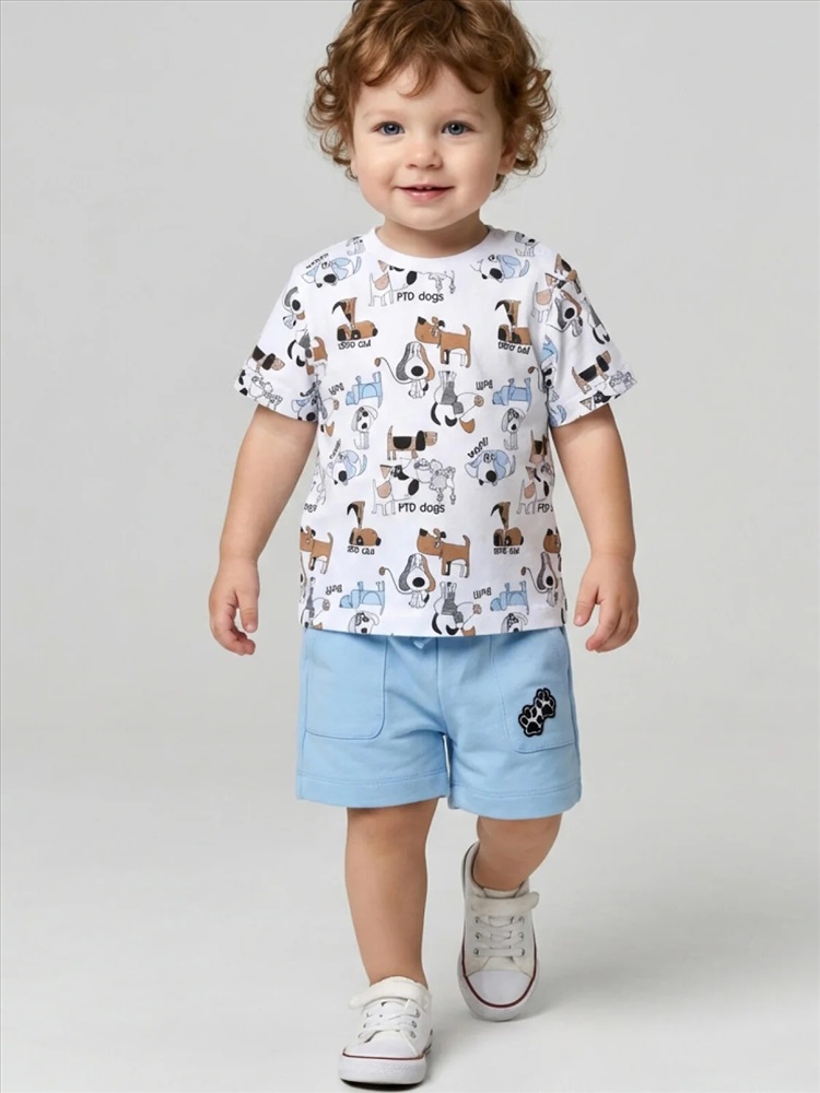 Российский размер: 80 Рост: 80 Возраст: 15 мес. Обхват шеи: 24 Артикул поставщика: 12613070 Состав: 100% хлопок Год: 2026 Детская футболка для мальчика. Модель прямого кроя, выполнена из мягкого хлопкового трикотажа интерлок. Красочные принты с милыми собачками. Горловина круглая, обработана эластичным рибом. На плече застежка на кнопки для удобного переодевания. Комментарии к товару