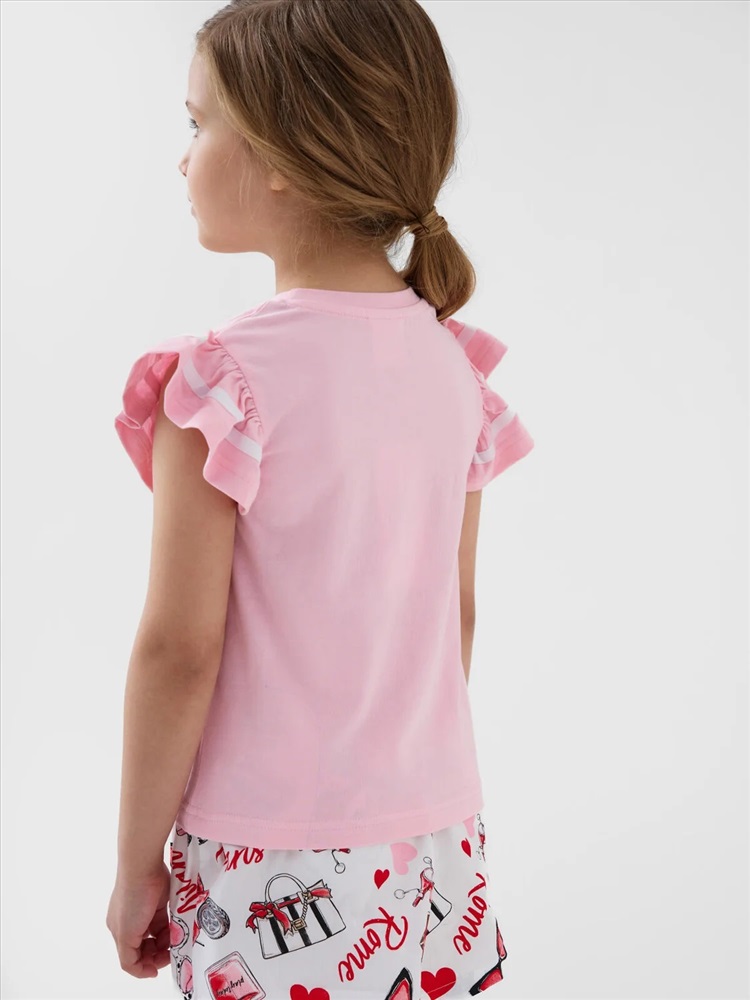 Российский размер: 98 Рост: 98 Возраст: 3 Обхват шеи: 25,5 Артикул поставщика: 12622138 Состав: 95% хлопок, 5% эластан Год: 2026 Детская футболка для девочки. Модель прямого кроя, выполнена из эластичного хлопкового трикотажа джерси. Спереди - крупный красочный принт. Горловина круглая. Рукава-крылышки. Комментарии к товару