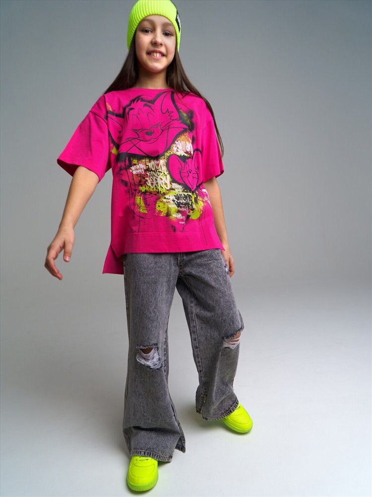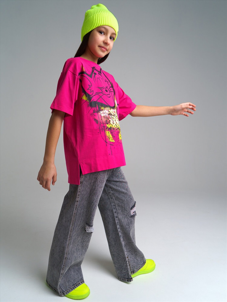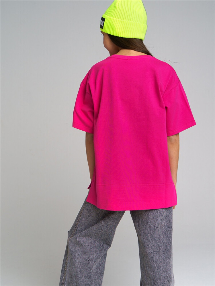 Футболка свободного силуэта из качественного и приятного на ощупь трикотажа джерси. Высокое содержание хлопка 95%. Благодаря наличию эластана в составе ткани изделие проще в уходе и держит форму.