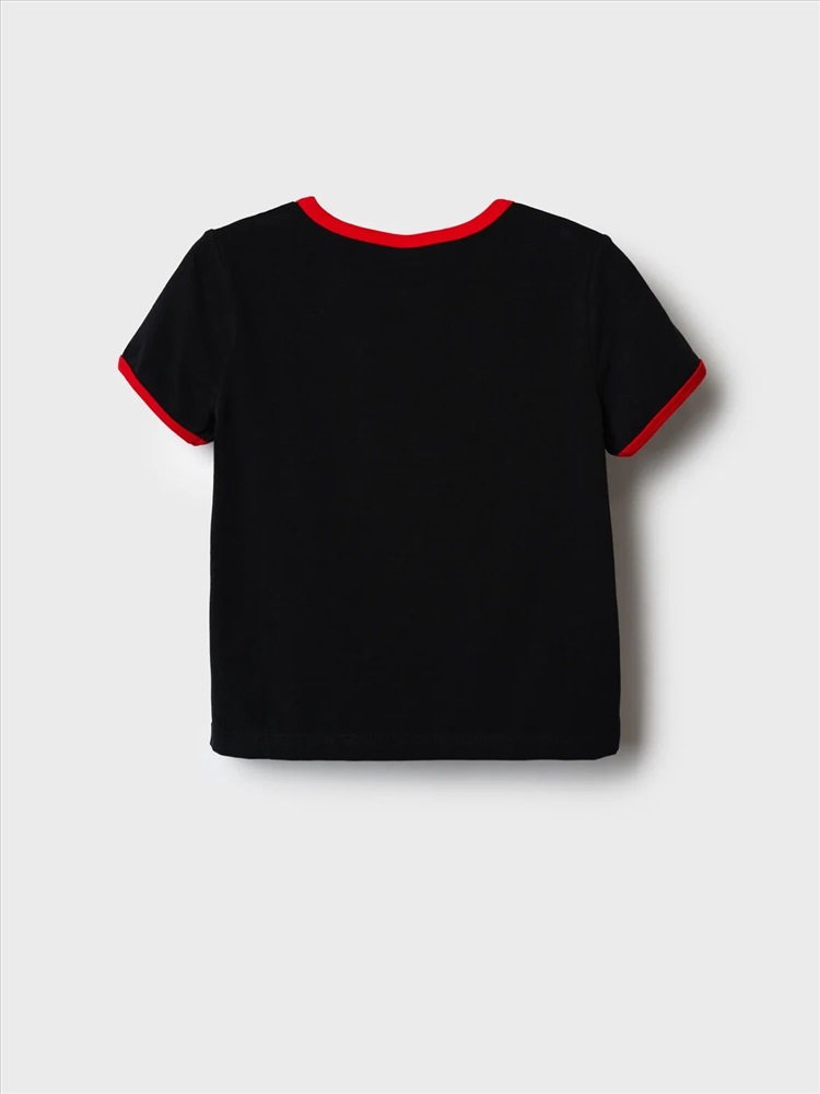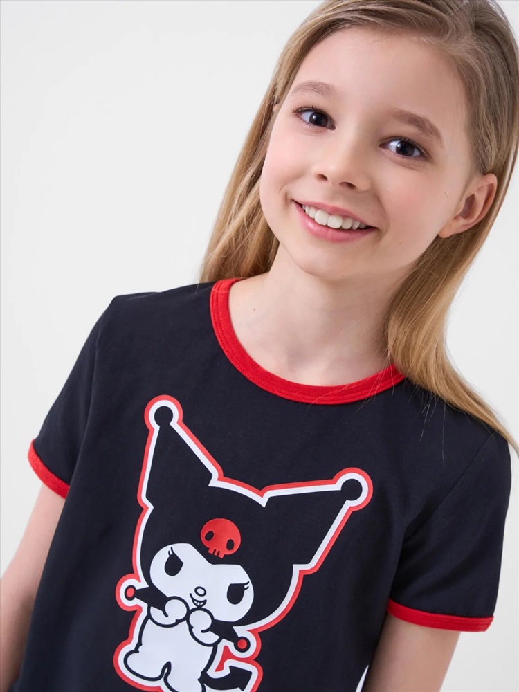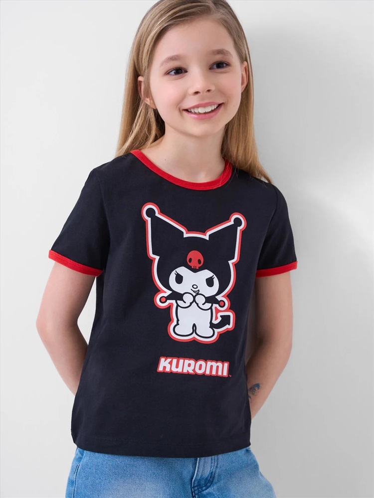 Футболка для девочки подростка. Модель прямого кроя, выполнена из эластичного хлопкового трикотажа джерси. На груди расположен крупный принт с любимым персонажем Куроми.