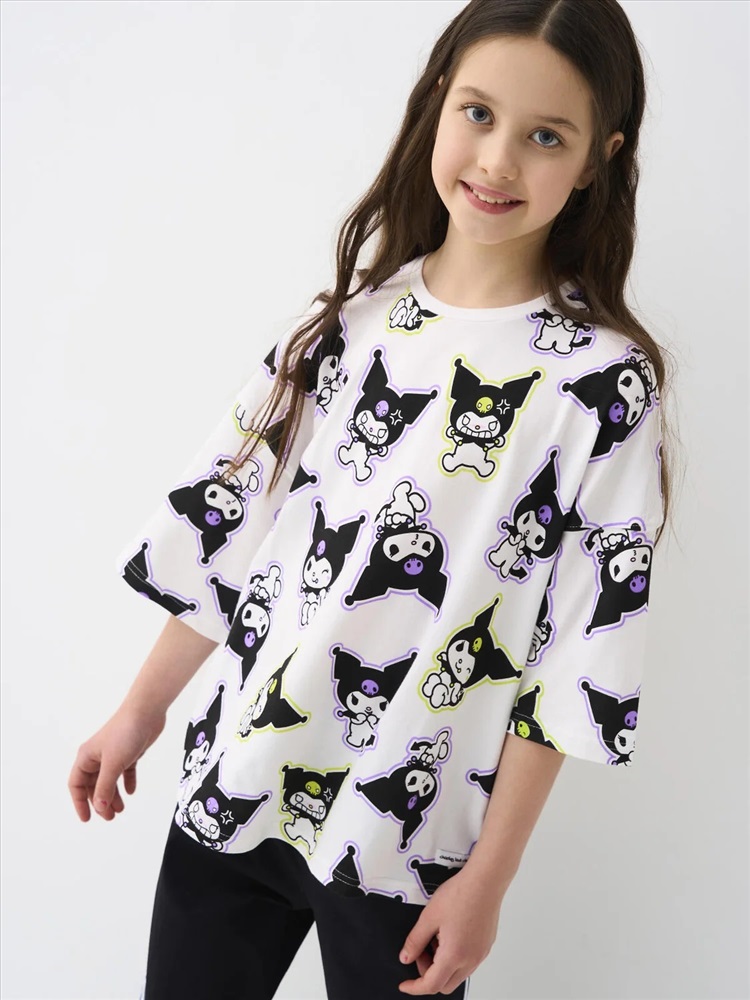 Футболка оверсайз для девочки подростка. Модель выполнена из эластичного хлопкового трикотажа джерси. Крупный принт с любимым персонажем Куроми.