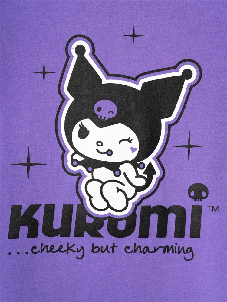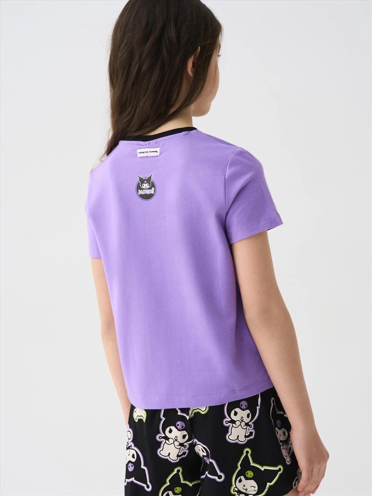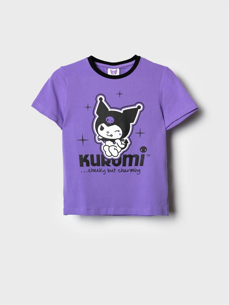 Футболка для девочки подростка. Модель прямого кроя, выполнена из эластичного хлопкового трикотажа джерси. На груди расположен крупный принт с любимым персонажем Куроми.