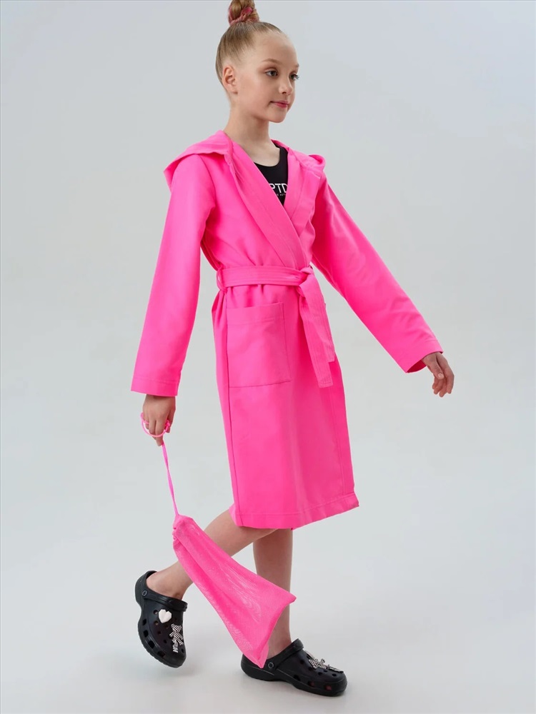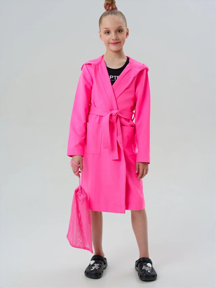 Этот яркий спортивный халат из мягкой микрофибры идеально подходит для девочек и подростков, ведущих активный образ жизни. Материал приятен к телу, не линяет и не теряет форму после многочисленных стирок. Благодаря быстрому впитыванию влаги и лёгкости, этот розовый подростковый халат незаменим после тренировок, физкультуры, плавания или душа — удобно брать с собой в рюкзак, сумку или чемодан.