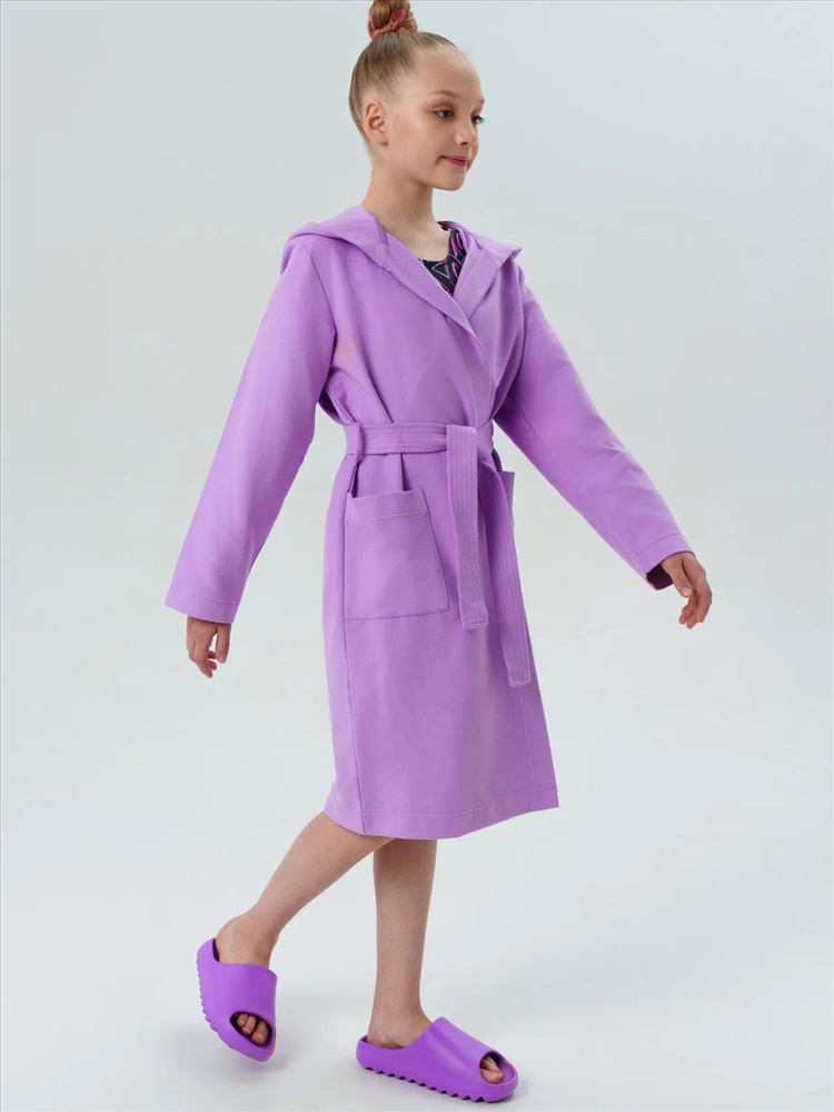 Этот яркий спортивный халат из мягкой микрофибры идеально подходит для девочек и подростков, ведущих активный образ жизни. Материал приятен к телу, не линяет и не теряет форму после многочисленных стирок. Благодаря быстрому впитыванию влаги и лёгкости, этот фиолетовый подростковый трикотажный халат незаменим после тренировок, физкультуры, плавания или душа — удобно брать с собой в рюкзак, сумку или чемодан.