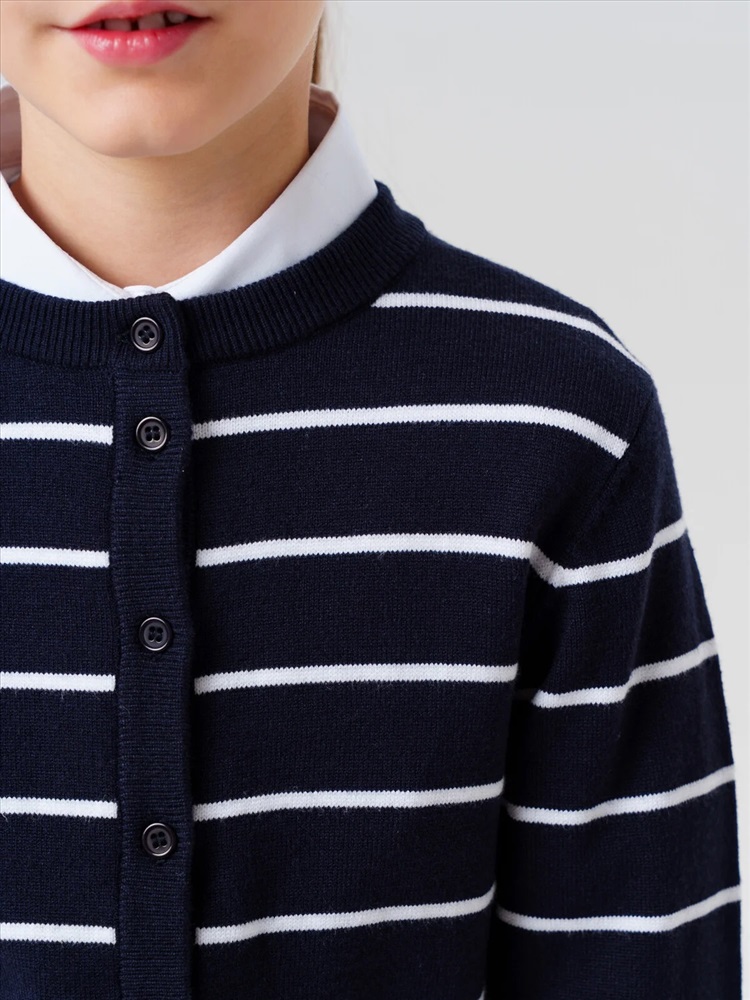 Артикул поставщика: 22527218 Год: 2025 Российский размер: 170 Рост: 170 Возраст: 15-18 Стильный школьный темно-синий кардиган на пуговицах для девочки-подростка. Этот модный кардиган для школы станет универсальным элементом гардероба юной модницы. Модель выполнена в базовом силуэте – классический крой обеспечивает комфорт в движении и современный внешний вид. Ключевые особенности: + Застежка на пуговицы + Дизайн в стильную полоску Почему стоит выбрать: Идеально подходит для школы – сочетает удобство и аккуратный внешний вид Удобный классический крой не сковывает движения Стильный дизайн понравится подросткам, следящим за модой Отличный вариант для повседневной носки и школьных будней. Качественные материалы и продуманный крой делают этот кардиган практичным выбором для девочки-школьницы. Комментарии к товару