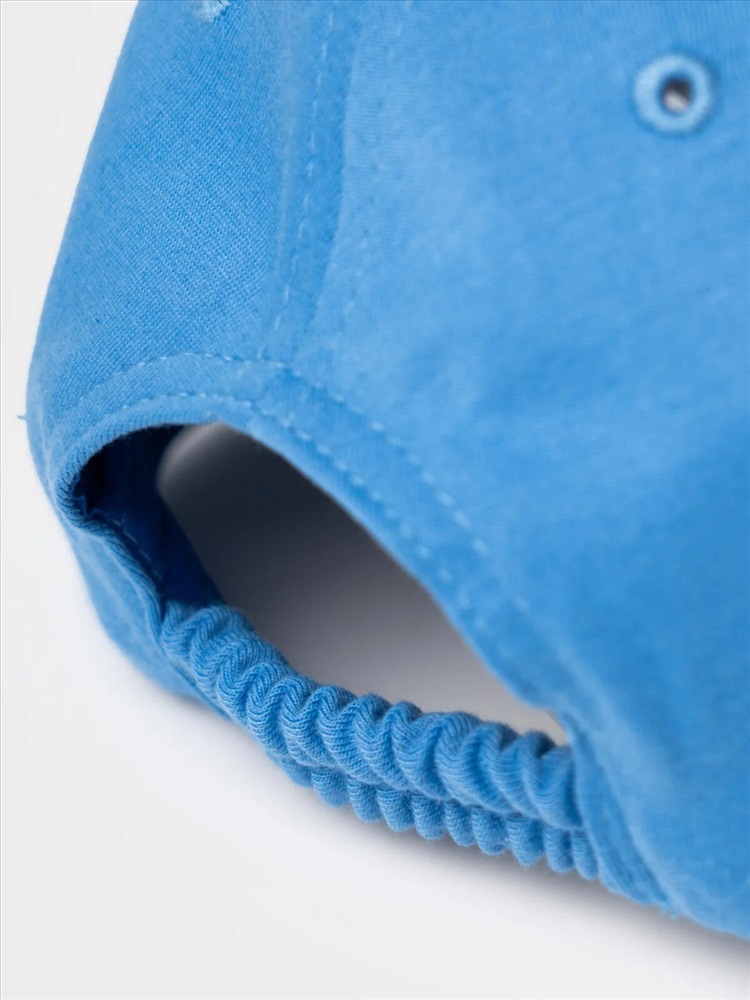 Детская бейсболка для мальчика. Выполнена из хлопкового трикотажа. На передней части расположены красочные вышивки: морской котик, кит, чайка и маяк, а на козырьке — забавный краб. Сзади вшита мягкая резинка, которая помогает кепке лучше сидеть на голове. По бокам — маленькие вентиляционные отверстия.