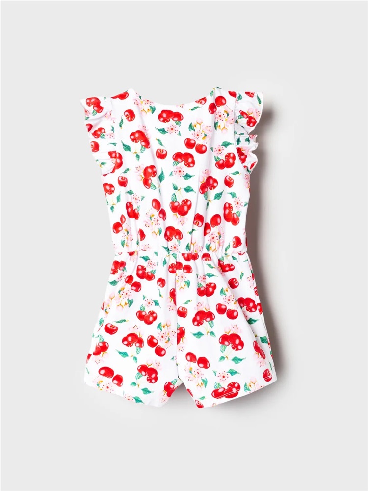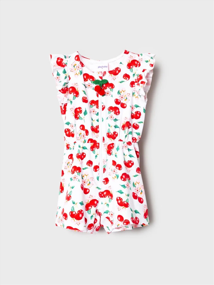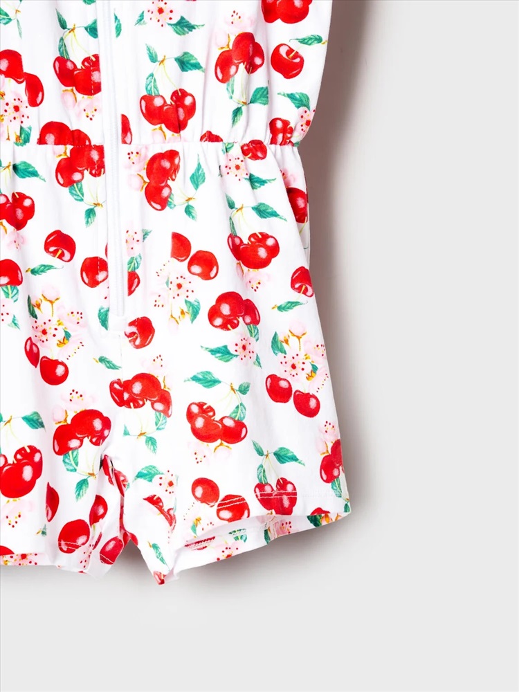 Российский размер: 98 Рост: 98 Возраст: 3 Обхват шеи: 25,5 Артикул поставщика: 12622413 Состав: 95% хлопок, 5% эластан Год: 2026 Лёгкий трикотажный комбинезон для девочки. Модель выполнена из хлопкового трикотажа джерси. Дизайн с ярким красочным принтом вишен, листьев и цветов. Рукава-крылышки. Застёжка-молния. На талии — мягкая резинка со шнурком для удобной посадки. Горловина круглая. Комментарии к товару