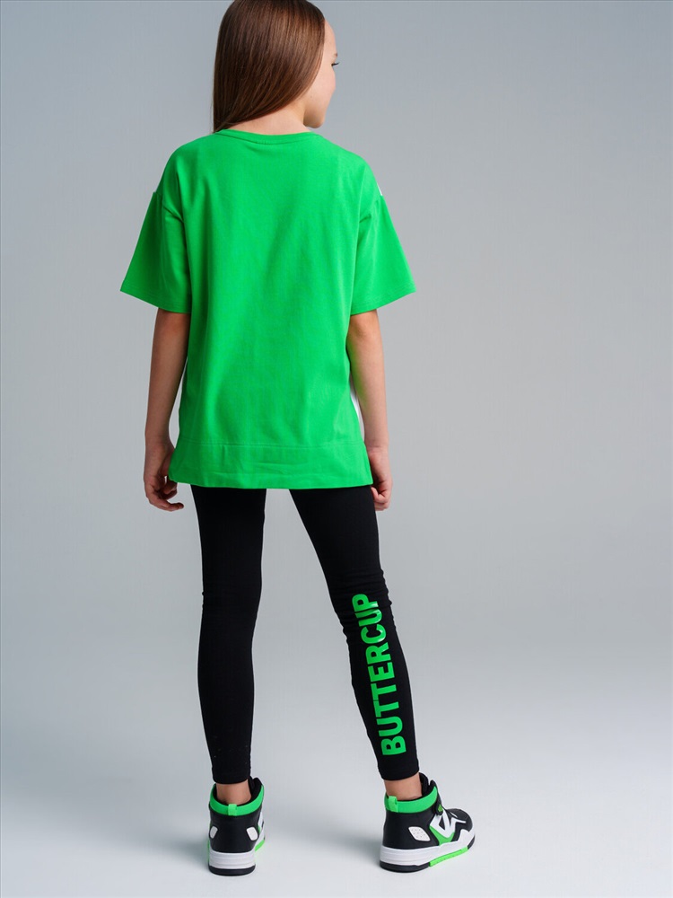 Комплект: футболка, легинсы из качественного и приятного на ощупь трикотажа джерси. Высокое содержание хлопка 95%. Благодаря наличию эластана в составе ткани изделие проще в уходе и держит форму. Футболка прямого кроя. Пояс - эластичная резинка.