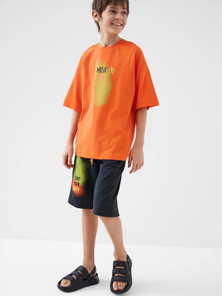 Российский размер: 146 Рост: 146 Возраст: 11 Обхват шеи: 32/31,1 Артикул поставщика: 12611364 Состав: 100% хлопок Год: 2026 Костюм для мальчика подростка. Состоит из футболки и шорт. Выполнен из хлопкового трикотажа. Футболка оверсайз, с коротким рукавом и ярким принтом. Шорты свободные, с эластичным поясом и шнурком для регулировки посадки. По бокам расположены карманы. Комментарии к товару