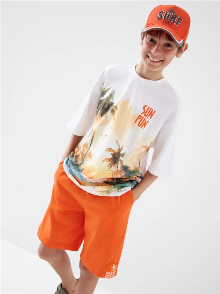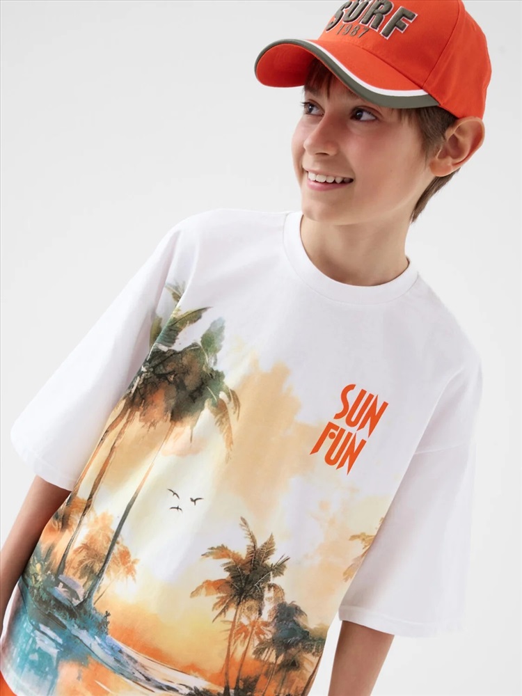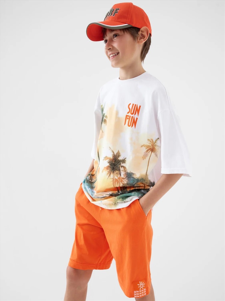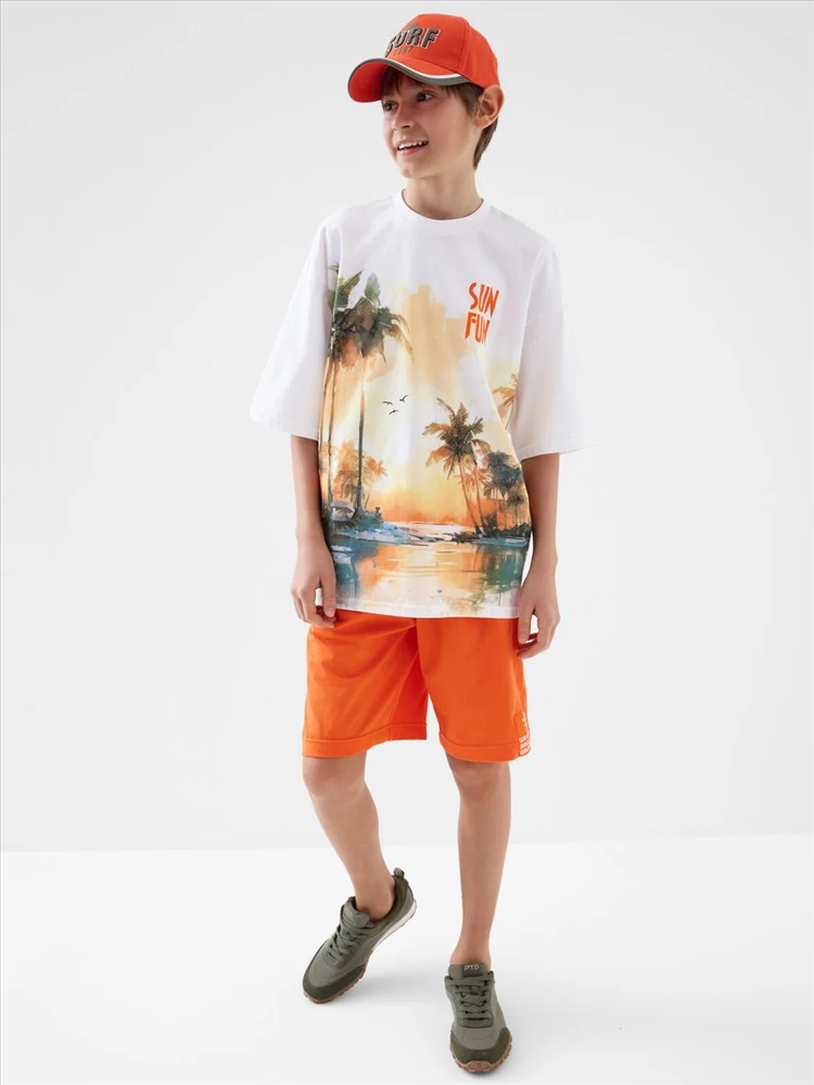 Российский размер: 146 Рост: 146 Возраст: 11 Обхват шеи: 32/31,1 Артикул поставщика: 12611378 Состав: 100% хлопок Год: 2026 Костюм для мальчика подростка. Состоит из футболки и шорт. Выполнен из хлопкового трикотажа. Футболка оверсайз, с коротким рукавом и ярким принтом. Шорты свободные, с эластичным поясом и шнурком для регулировки посадки. По бокам расположены карманы. Декоративная нашивка. Комментарии к товару