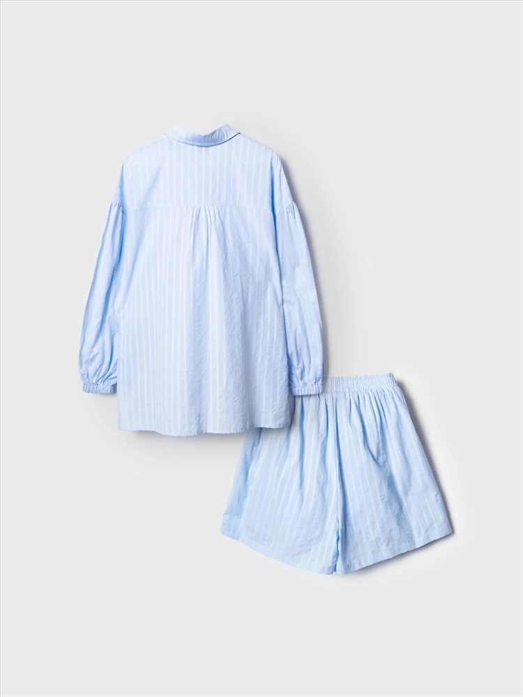 Российский размер: 44 Обхват груди: 84-88 Обхват талии: 66-70 Обхват бедер: 92-96 Артикул поставщика: 12666188 Состав: 100% хлопок Год: 2026 Легкий женский хлопковый костюм. Рубашка оверсайз с длинным рукавом и застежкой на пуговицы. Классический воротник, боковые разрезы. Манжеты на резинке. Свободные шорты на резинке. Комментарии к товару