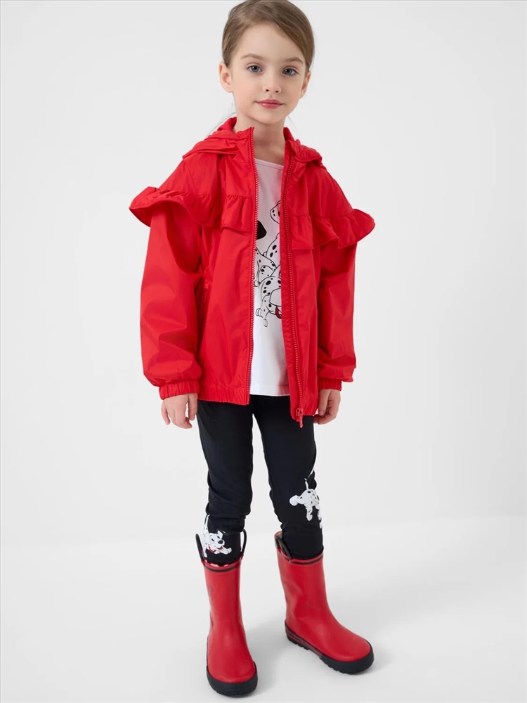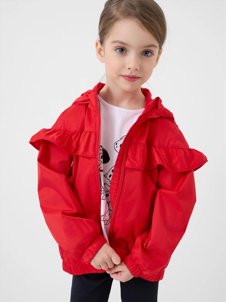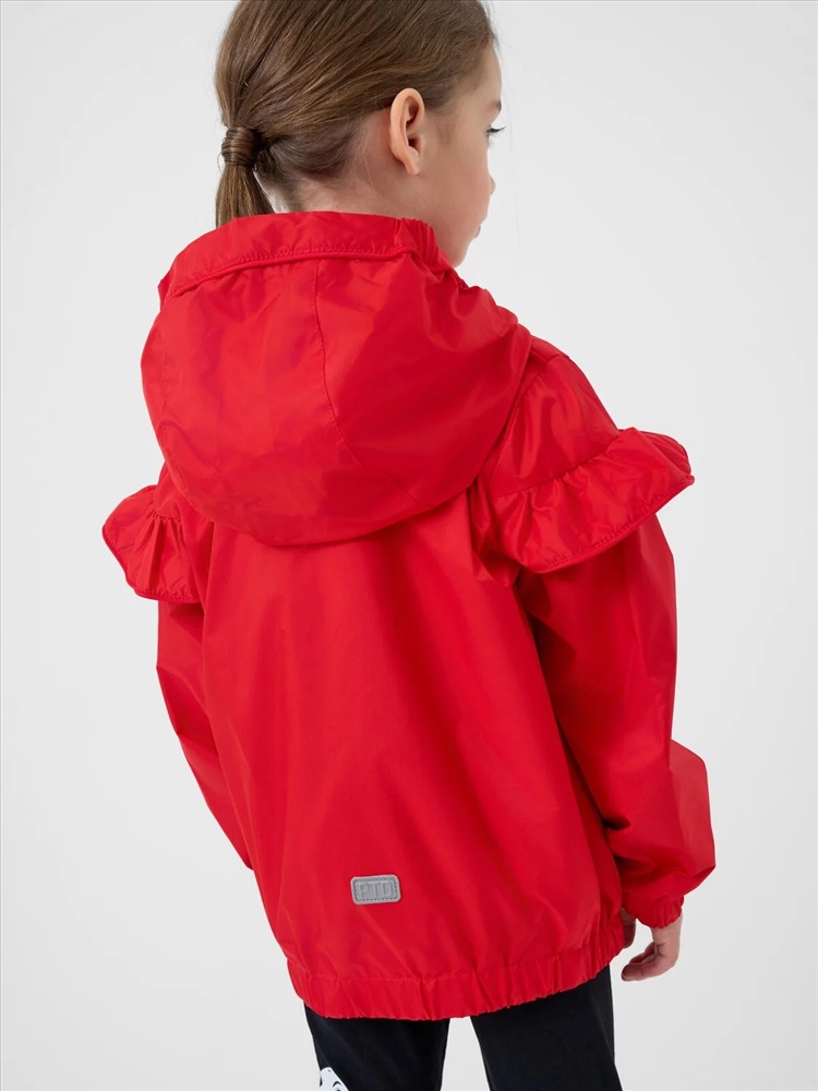 Ветровка детская для девочки. Температурный режим от +20С до +10С. Ткань с ветрозащитным и водоотталкивающим покрытием. Внутри гладкая подкладка. Капюшон несъемный на резинке. По бокам расположены два кармана на молнии. Внутренний карман на липучке. На манжетах и по низу изделия эластичная резинка. Есть светоотражающие элементы для безопасности.