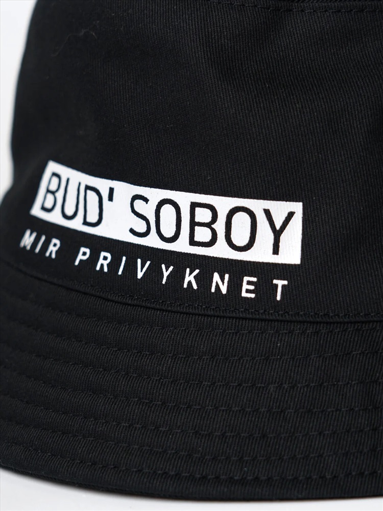 Панама для мальчика подростка. Модель в классическом стиле, выполнена из черной плотной хлопковой ткани с внутренней подкладкой из легкого хлопка. На передней части изделия размещён выразительный резиновый принт. По бокам есть вентиляционные люверсы для комфорта в жаркую погоду. С внутренней стороны выведен черный шнур, который можно регулировать. На задней части — маленькая жаккардовая этикетка с логотипом.
