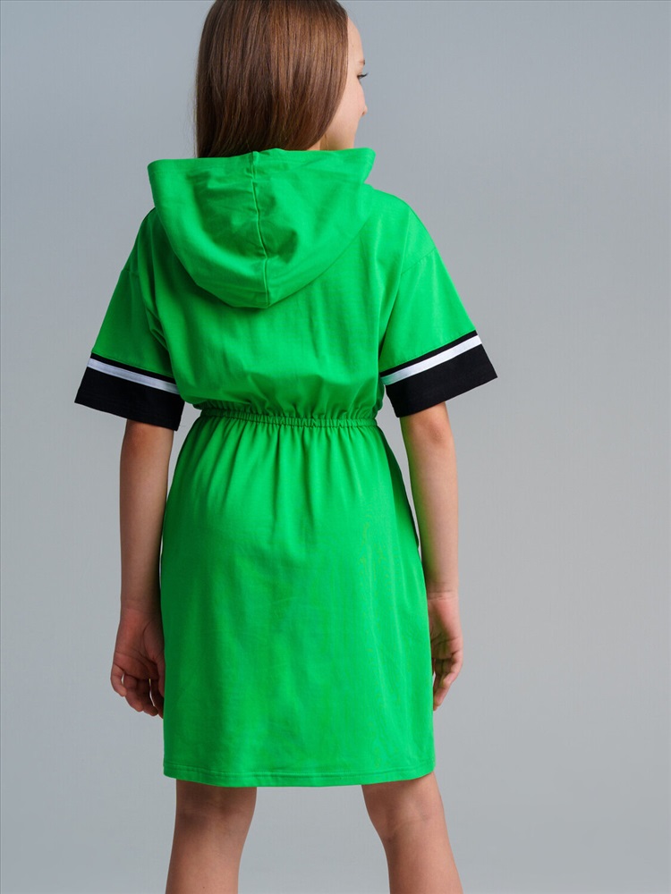 Российский размер: 128 Рост: 128 Возраст: 8 Обхват шеи: 29,5/28 Артикул поставщика: 12441017 Год: 2024 Платье с капюшоном из качественного и приятного на ощупь трикотажа джерси. Высокое содержание хлопка 95%. Благодаря наличию эластана в составе ткани изделие проще в уходе и держит форму. По талии эластичная резинка. Комментарии к товару