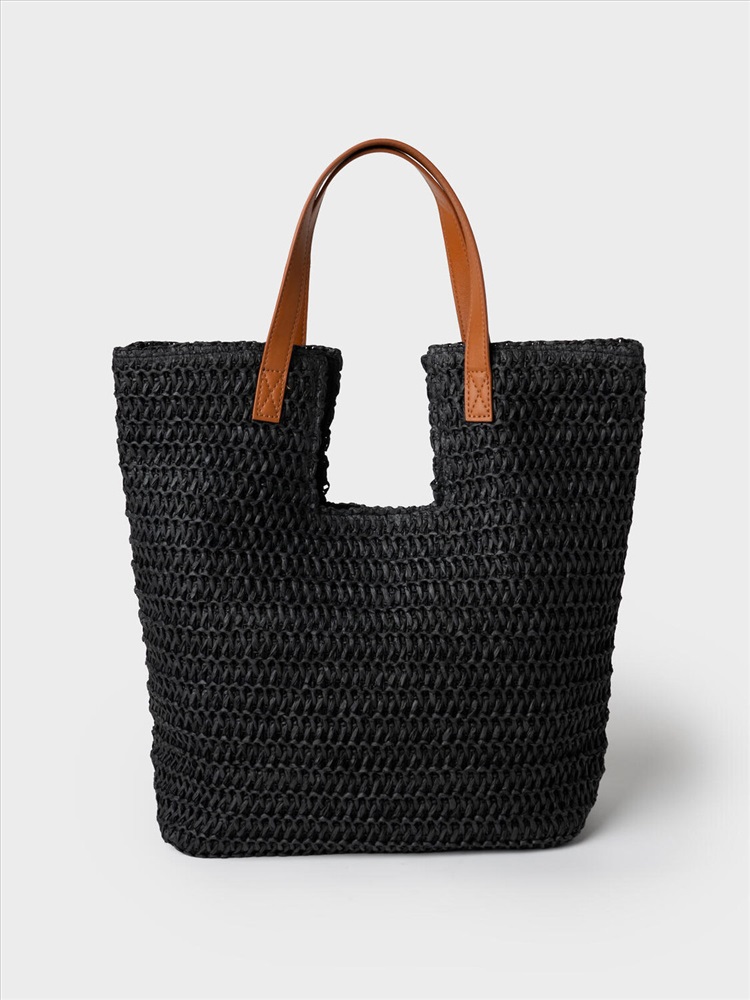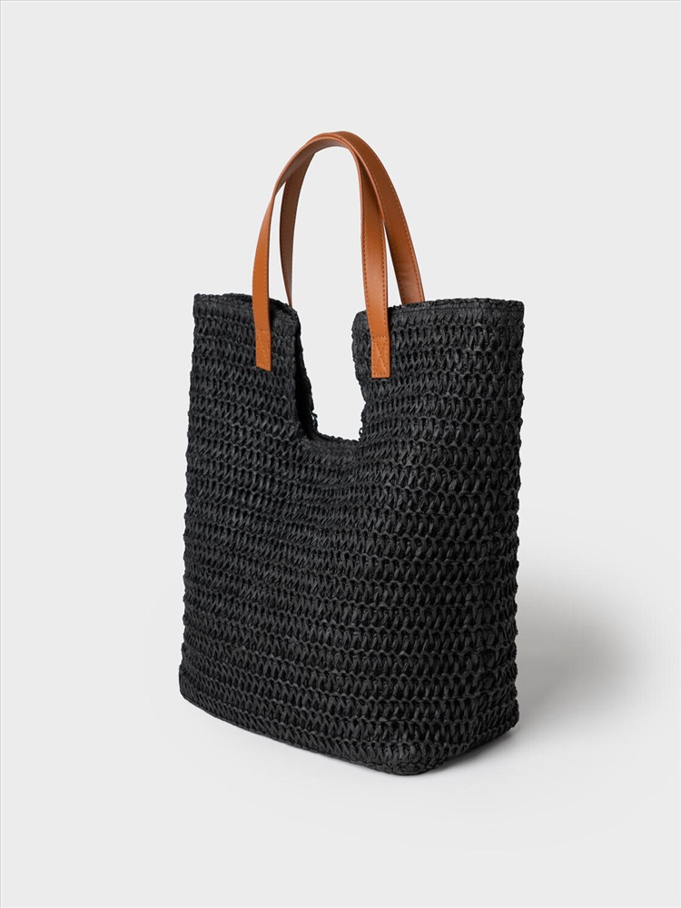 Стильная пляжная сумка из искусственной рафии. Ручки выполнены из искусственной кожи. Сумка закрывается на кнопку. Внутри имеется подкладка и два кармана для телефона и транспортной карты, карман на молнии для ценных вещей. Параметры сумки: высота - 37 см, ширина -28 см, глубина - 12 см.