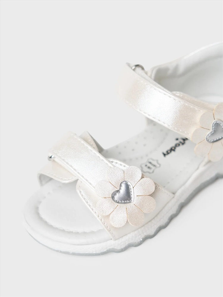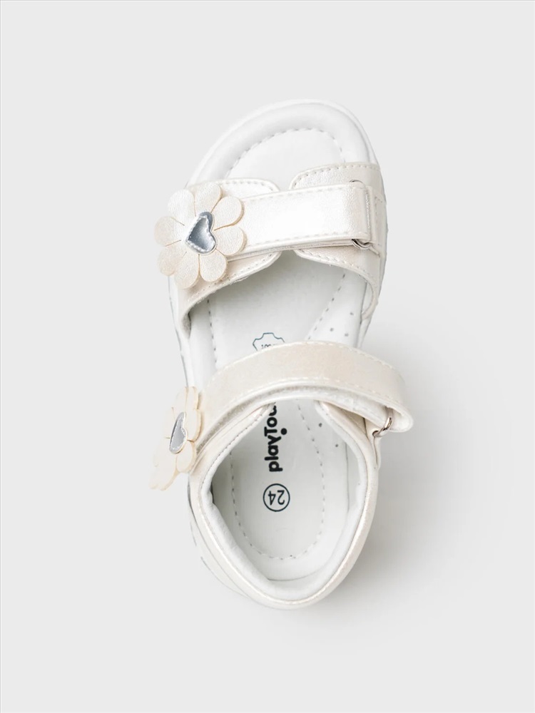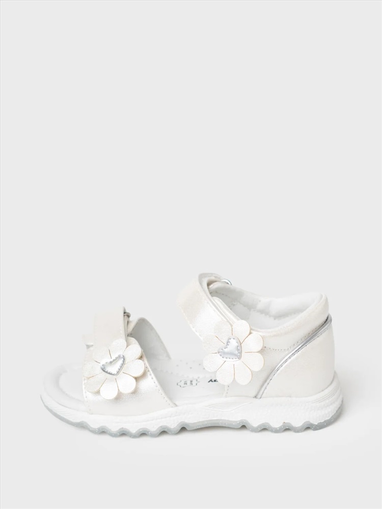Белые сандалии для девочки с закрытой пяткой и открытым носом. Нарядные босоножки выполнены из искусственной кожи по свойствам приближенной к натуральной коже. Стелька из натуральной кожи с анатомическим элементом, поддерживающим свод стопы в правильном положении. Подкладка выполнена из 100% свиной натуральной кожи. Удобные возвратные ремни с липучками позволяют регулировать объем на любой подъем. Гибкая подошва из терморезины обладает гибкостью и повышенной прочностью.