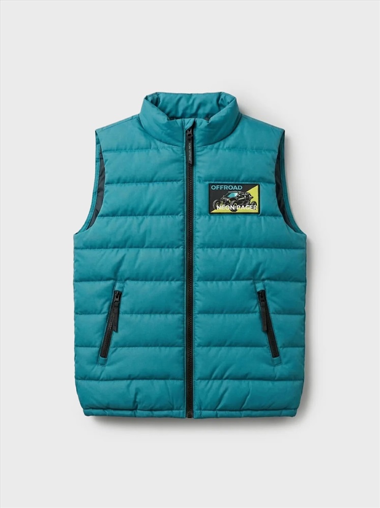 Лёгкий детский стёганый жилет для мальчика. Температурный режим от +15°C до 0°C. Ветрозащитное и водоотталкивающие покрытие. Гладкая подкладка. По бокам предусмотрены два кармана на молнии. Внутри расположен карман на липучке. Проймы и нижний край обработаны эластичной резинкой для комфортной посадки.