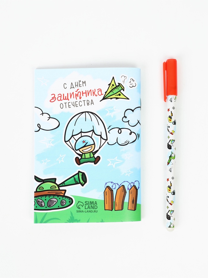 Производитель: ArtFox; Габариты: 1 x 12,5 x 18,5; Доставка: Платная; Страна: Россия; В боксе: 140 набор; Фасовка: по 1 набор; Индивидуальная упаковка: Пакет (БОПП, полиэтилен, ПВХ, дой-пак); Сертификат: Не подлежит сертификации; Для кого: Для мальчика; Формат: А6; Тип скрепления: На скобе; В наборе, шт.: 2; Количество листов: 32; Отделка: Без отделки; Материал обложки: Бумага; Вид упаковки: Пакет; Тематика праздника: 23 Февраля; Адресат: Без адресата; Составляющие набора: Ручка, Блокнот; Возраст: Для детей; Вид обложки: Мягкая; Дизайн обложки: С рисунком