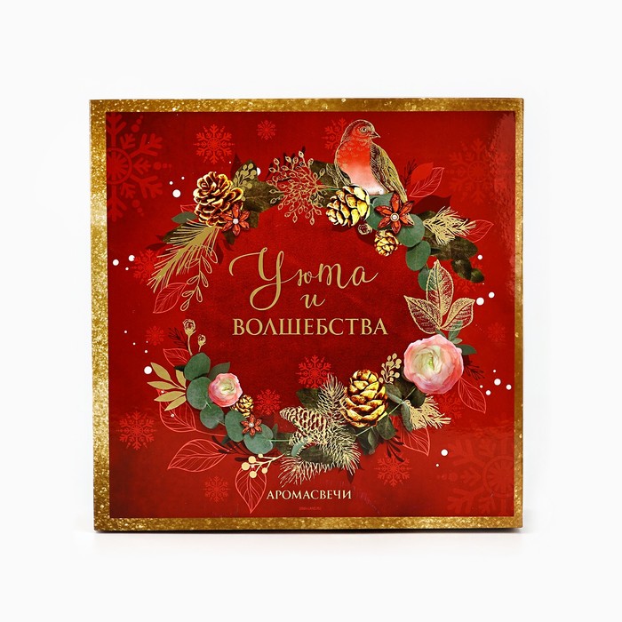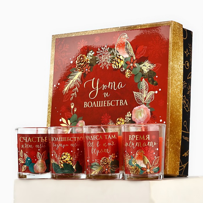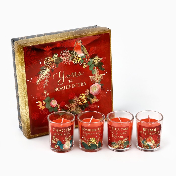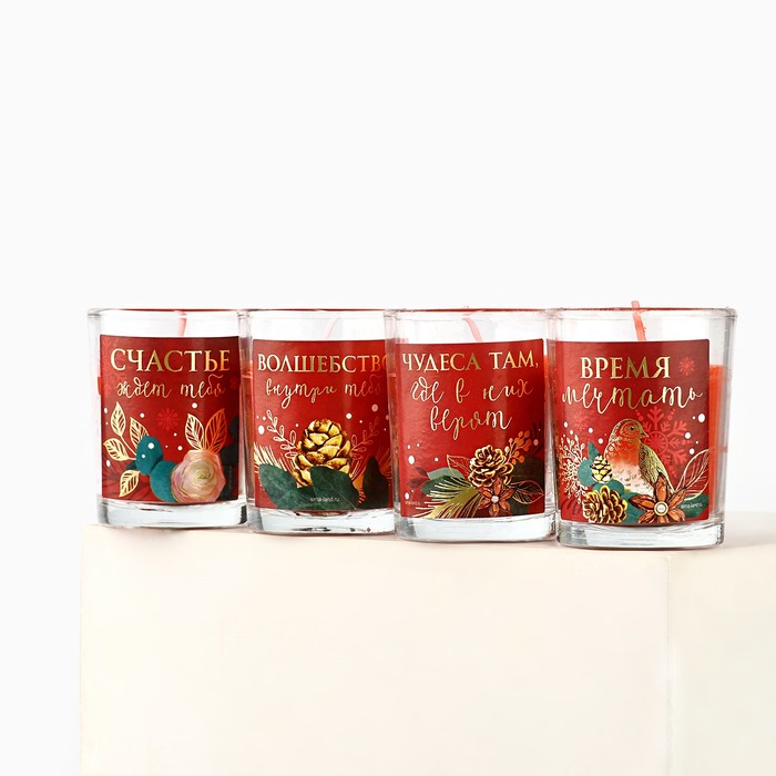 Подарочный набор новогодних свечей ароматических «Уюта и волшебства», 4 шт., вишня, 22×22×6 см