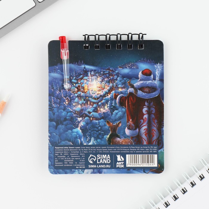 Производитель: ArtFox; Габариты: 10,5 x 9 x 1; Страна: Россия; В боксе: 200 набор; Состав: Бумага, пластик, чернила; Материалы: бумага, пластик, чернила; Фасовка: по 1 набор; Индивидуальная упаковка: Пакет; Габариты товара: 10,4 см × 9 см × 1 см; Сертификат: Не подлежит сертификации; Для кого: Для мальчика, Для девочки; Формат: А7; Линовка блока: Без линовки; Тип скрепления: На гребне/спирали; В наборе, шт.: 2; Количество листов: 32; Отделка: Без отделки; Материал обложки: Картон; Вид упаковки: Пакет; Символ года: Нет; Тематика праздника: Новый год; Адресат: Без адресата; Материал: Пластик, Бумага; Составляющие набора: Ручка, Блокнот; Возраст: Для детей; Вид обложки: Мягкая; Стиль: Советский; Реестр Минпромторга: Нет; Дизайн обложки: С рисунком