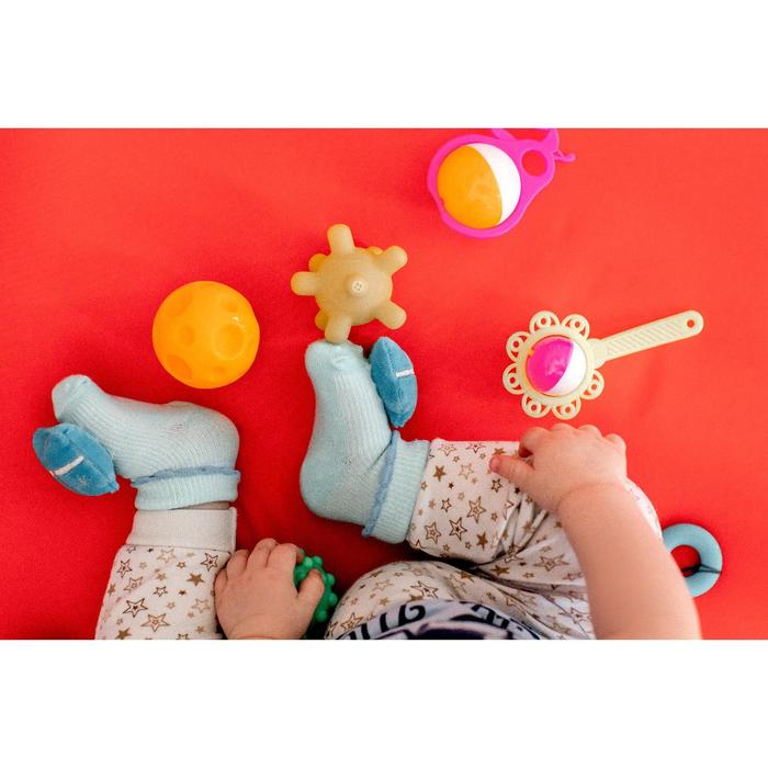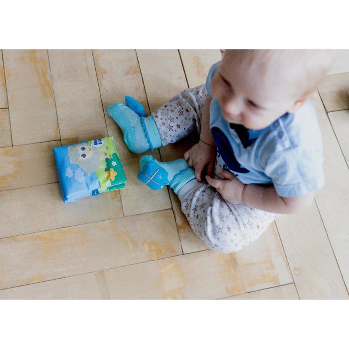 Носочки погремушки и браслетики со звуковым эффектом не только согреют ножки и ручки вашего малыша, но и привлекут его внимание яркими цветами, а также звоном погремушек. Мягкие игрушки - браслеты крепятся на ручки ребенка и застегиваются на удобные липучки. А носочки одеваются на ножки. Малыш сможет до них дотянуться, потрогать ручками или просто погреметь ими, подергав ножками. Малыш играет и развивает не только мышцы, но и координацию, моторику, внимание, зрение, слуховое восприятие. Милые игрушки пробуждают его стремление исследовать мир вокруг себя. Набор состоит из двух носочков и двух браслетиков с погремушками. Изготовлены из качественного и безопасного для здоровья детей материала, который не выцветает. Они подарят улыбку и мальчикам, и девочкам, а также станут отличным подарком вашим близким.