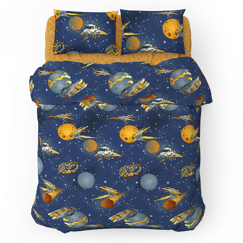 Пододеяльник на пуговицах 1,5 спальный "Космический полет" 145х215см, поплин 115г/м2, хлопок 100%, упаковка "классическая" ПВХ 28х41см, "Домашняя мода" (Россия)