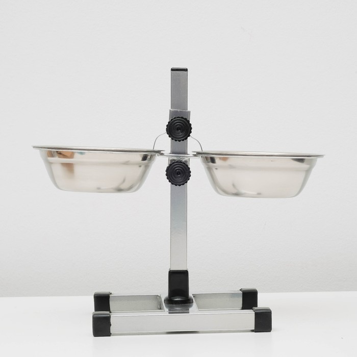 Стойка с 2-мя мисками для кормления сразу нескольких животных, это – идеальное решение для кормления щенков и собак подростков, живущих на одной территории. Качественные, практичные и функциональные миски для собак размещены на регулируемой подставке, которая будет "расти" вместе с вашими малышами. Винтовая кормушка убережёт помещение от загрязнения кормом и водой. Металлическая конструкция очень устойчивая, поэтому ее очень сложно сдвинуть или опрокинуть даже самым активным щенкам. Стойка и миски хорошо переносят обработку горячей водой, моющими и дезинфицирующими средствами.