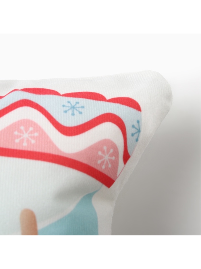Подушка хорошо смотрится в паре с другими новогодними элементами — на полке с ёлочными шарами, на диване рядом с пледом или в детском уголке как часть зимней композиции. Её можно использовать как элемент декора, так и как мягкую опору — она устойчива, не деформируется.