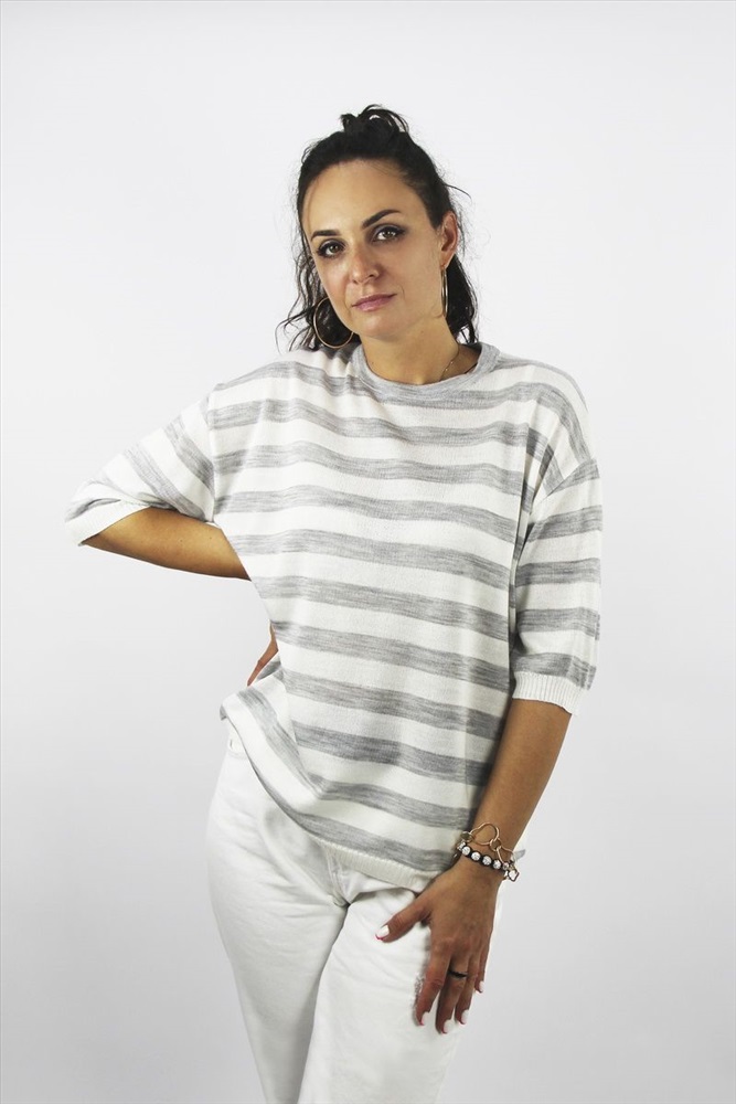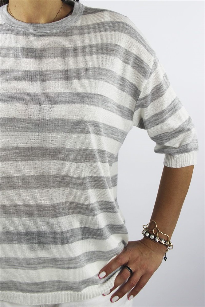 Джемпер второго слоя одежды, прямого силуэта, полурегулярный, с коротким рубашечным рукавом.