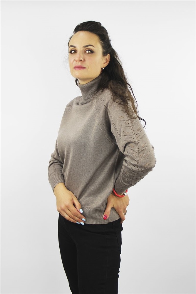 Свитер второго слоя одежды, укороченый, с длинным рукавом "реглан". Вырез горловины обработан отложным воротником, высотой в г.в. 17,0+-0,5 см.